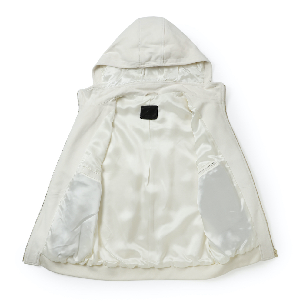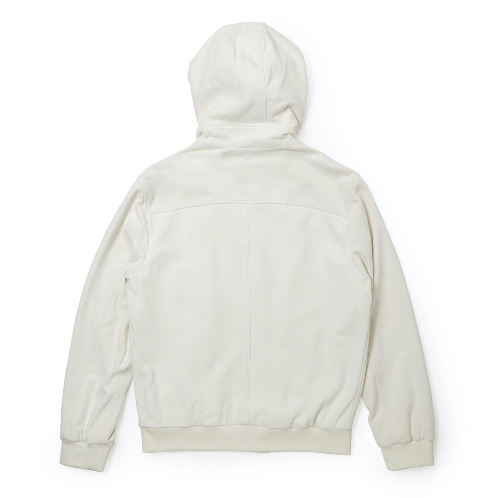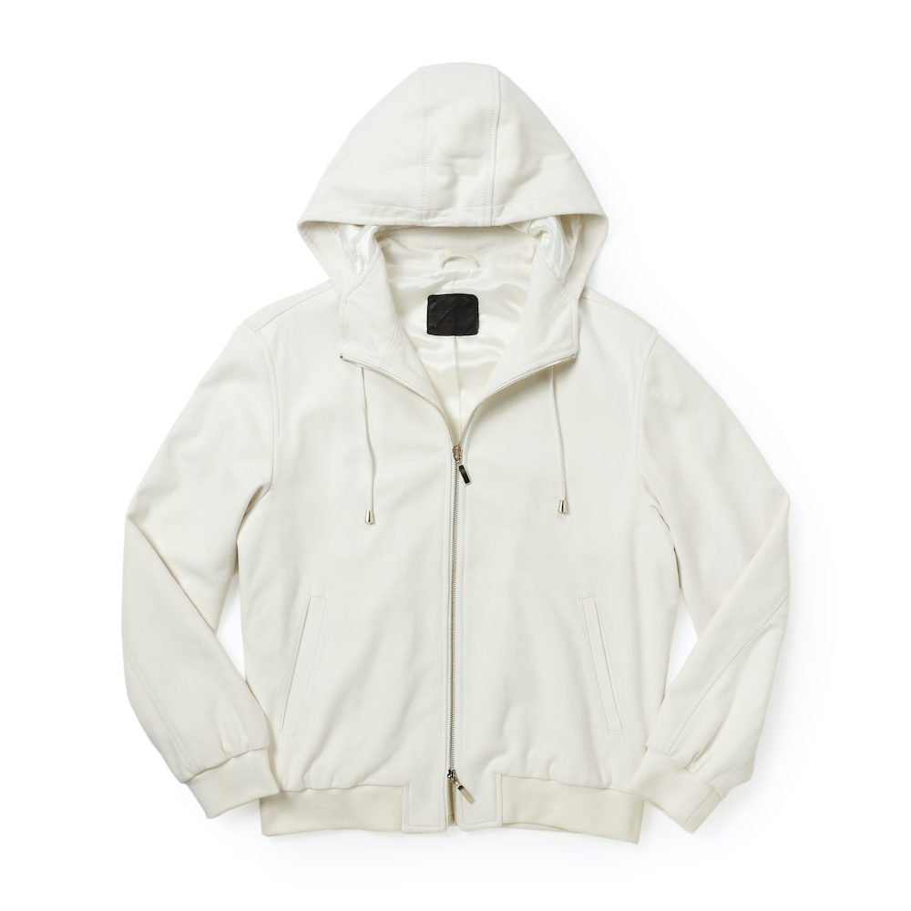 ・スポーティなパーカーをメゾンクオリティーの0.6ミリ厚ゴートスキンスウェードで仕立てラグジュアリーなアイテムに昇華する、これがコンセプト。
