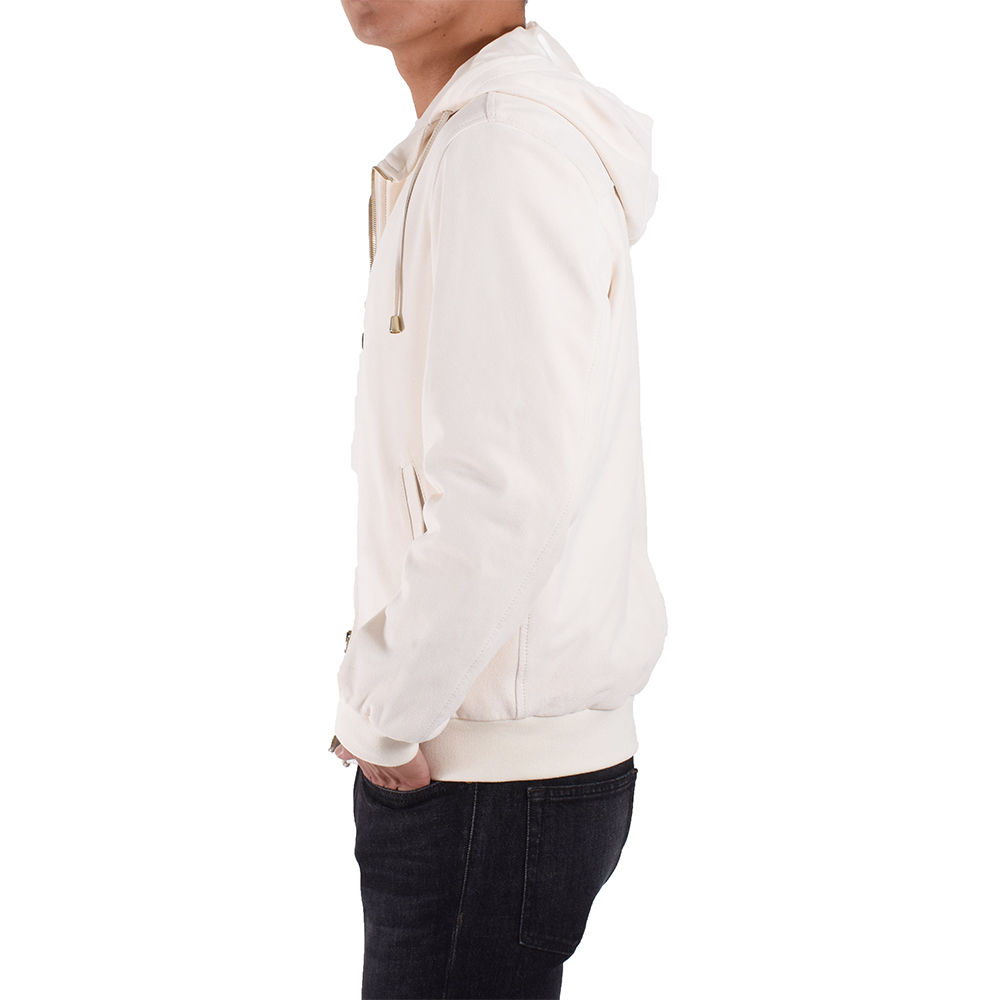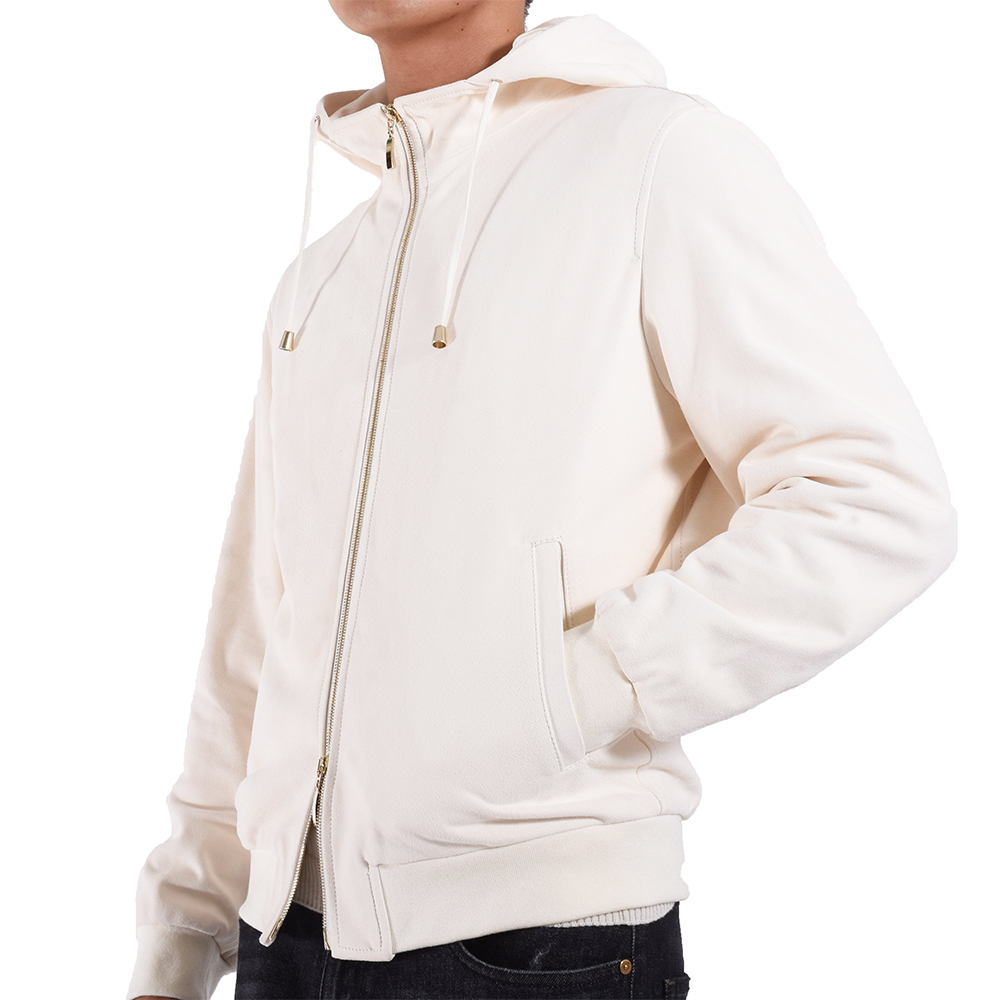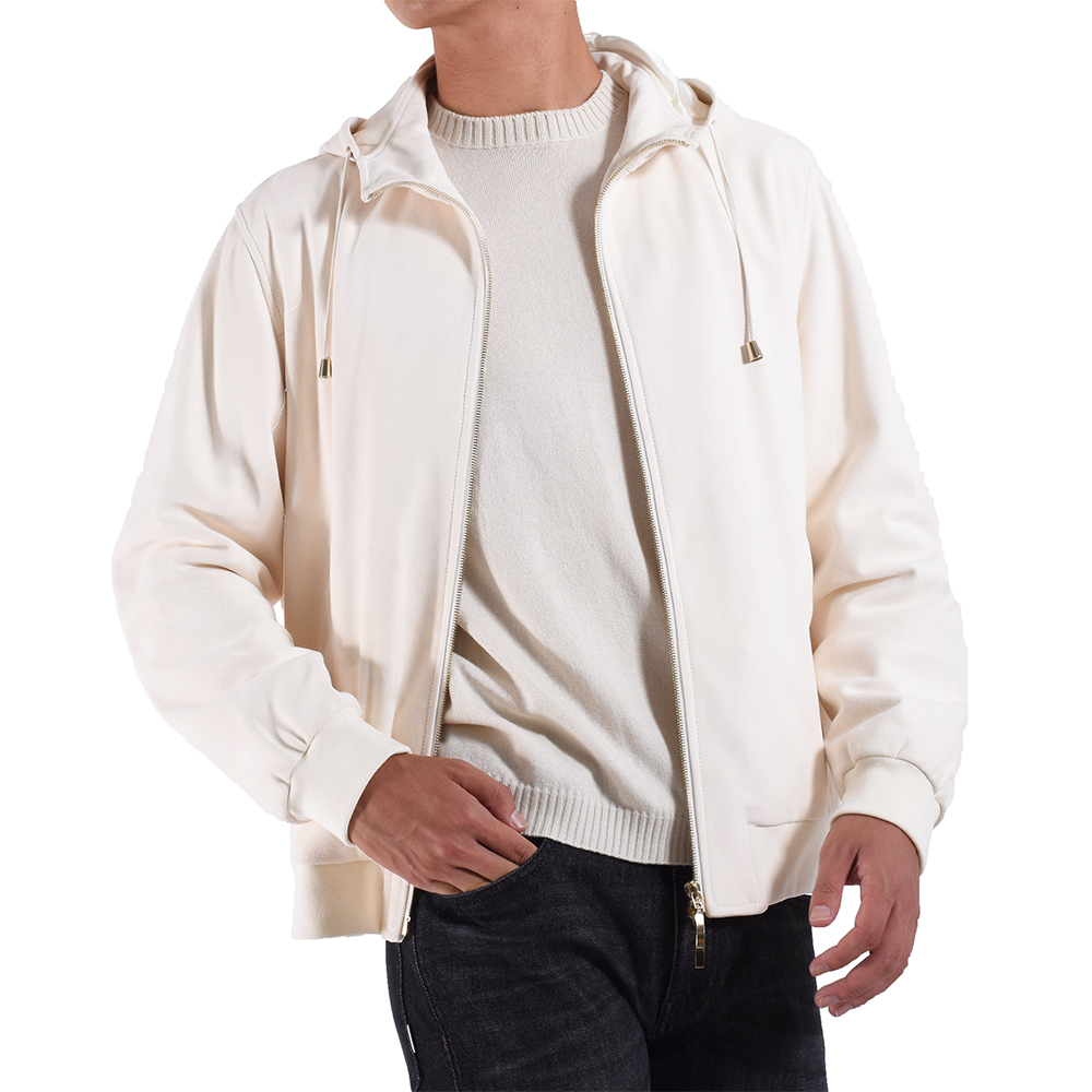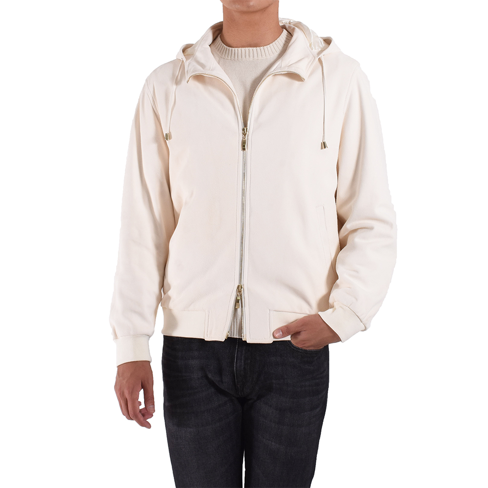 ・スポーティなパーカーをメゾンクオリティーの0.6ミリ厚ゴートスキンスウェードで仕立てラグジュアリーなアイテムに昇華する、これがコンセプト。