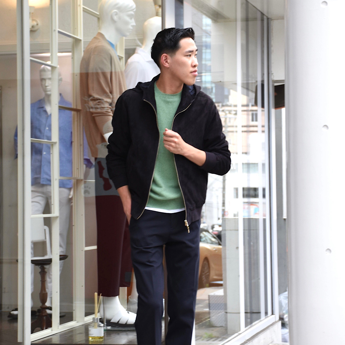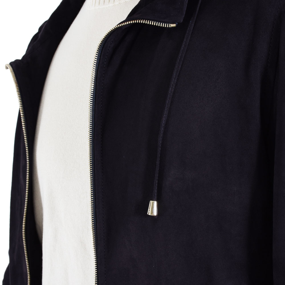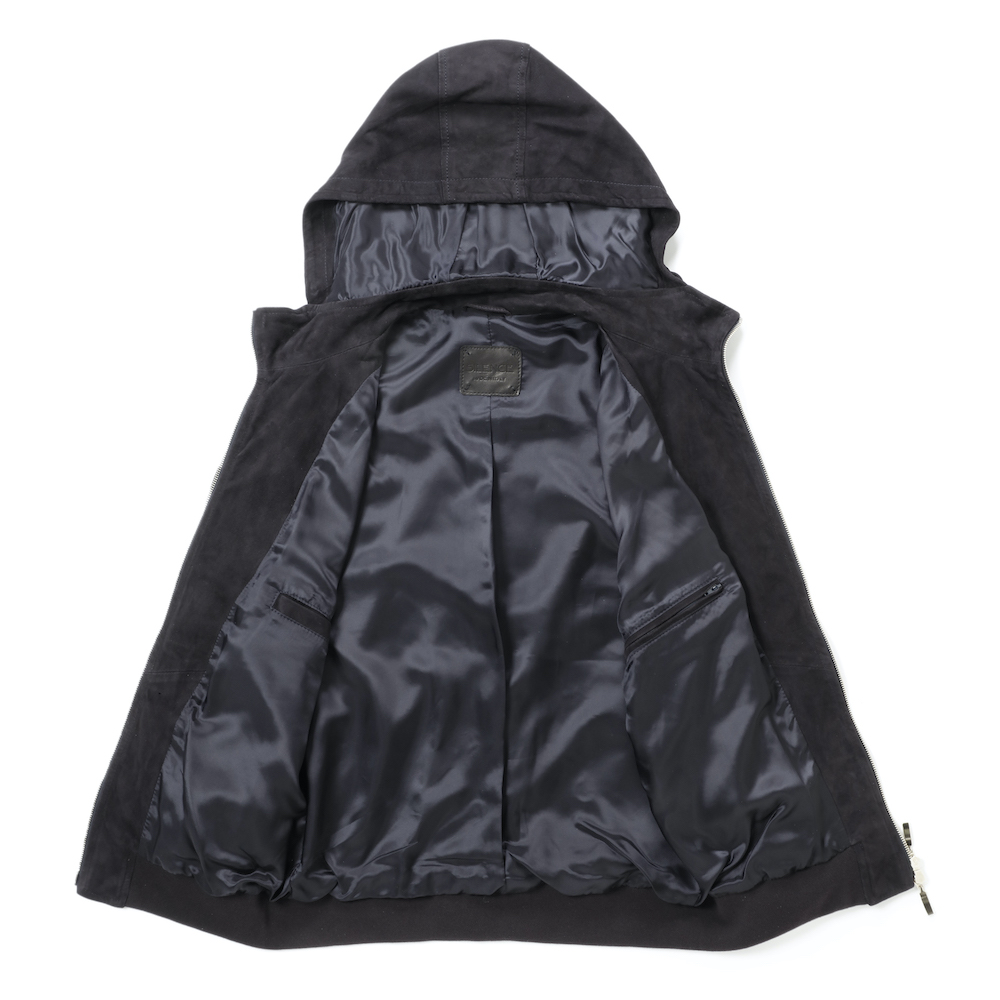 ・スポーティなパーカーをメゾンクオリティーの0.6ミリ厚ゴートスキンスウェードで仕立てラグジュアリーなアイテムに昇華する、これがコンセプト。