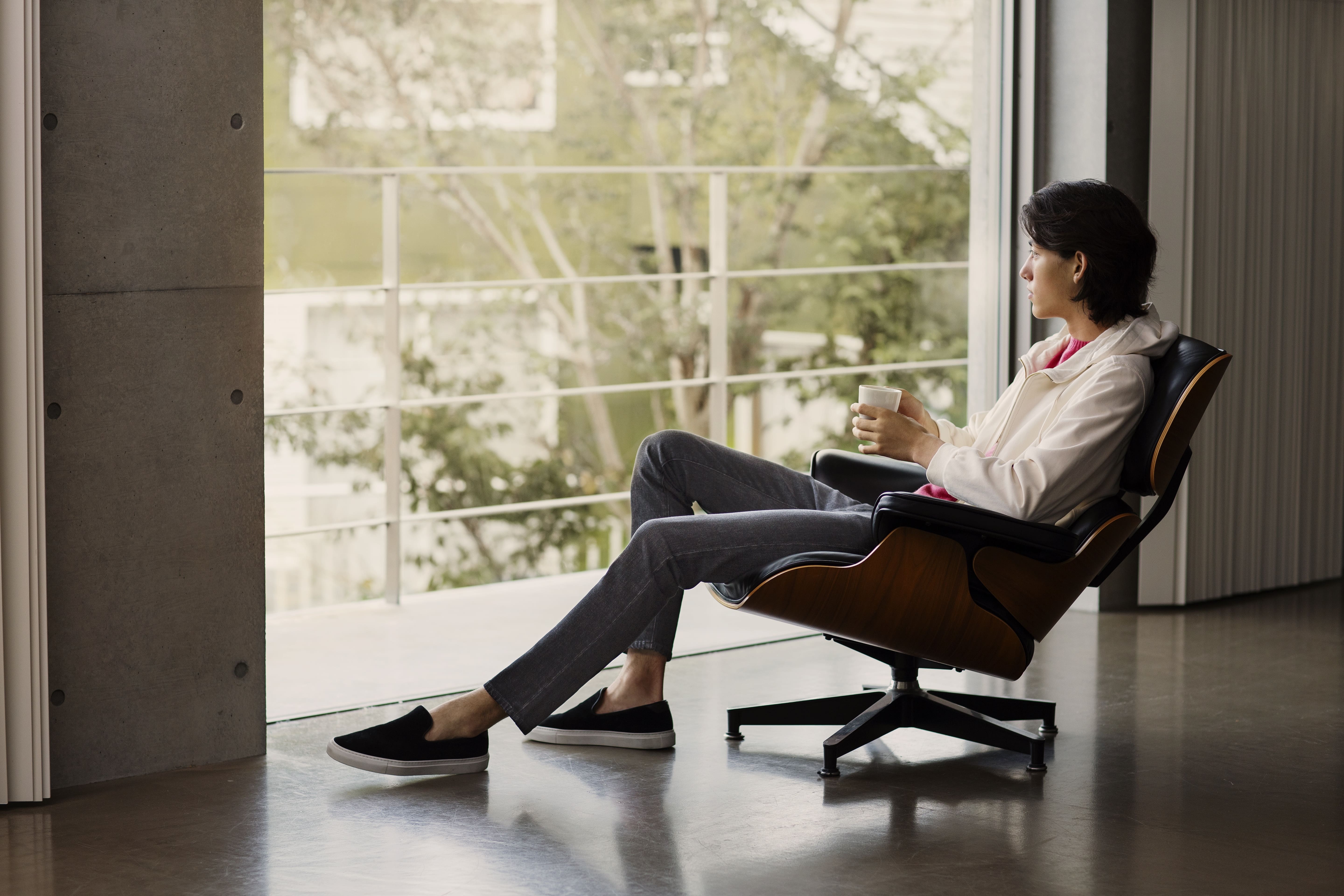 ・バリエーションは全てスウェードで充実の4色。ベーシックなダークネイビー、ラグジュアリーなオフホワイト、そしてパートナーとのシェアもできる、オレンジレッドとブルー。ジェンダーレスな色を取り入れることで、ハードに見えがちなレザーアイテムを柔らかな印象にしたい、という意味合いを込めたラインナップです。