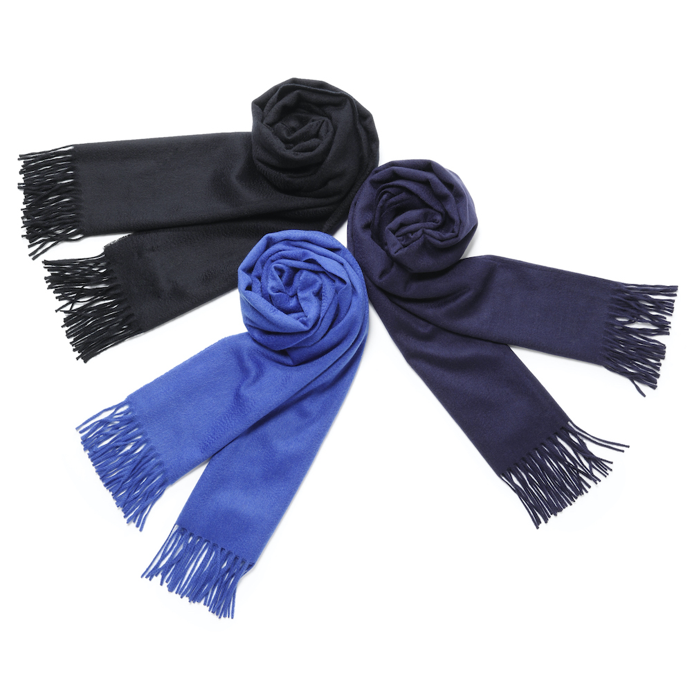 柔らかなカシミアストールは、やはり冬場のアイテムとして持っておきたい一本。柔らかさと滑らかを兼ね揃えております。そして少し肉厚な編み地なので、保温性も抜群!男性が使用するのはもちろんですが、女性の方でも◎パートナーと兼用で愛用するのも良いですね〜!ベーシックカラーはもちろん、発色が綺麗なカラー物も豊富にラインナップ!