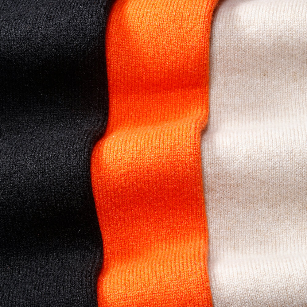 ・かなり贅沢にカシミアを使っており、見た目にもそれが伝わる仕上がりです。カシミアに定評のある" カリアッジ"の糸を通常製品と比較して2倍使用。スムース編みは、生地で言うところのダブルフェイスのような仕上がりになるため、表裏ともに肌触りが極上!肌がデリケートな方でも納得できるはず。