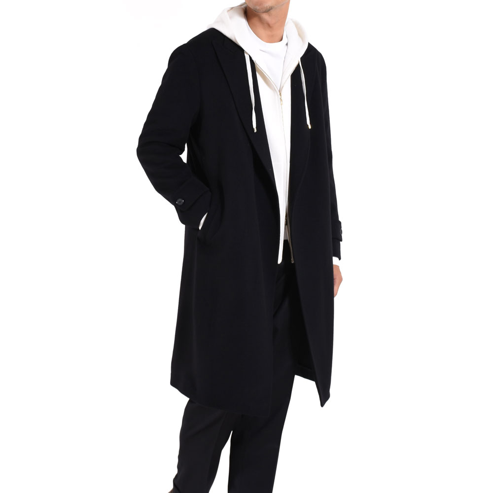 サイズ48を着用し、ジャストサイズでした。着丈はヒップに少しかかるくらい、袖丈は親指の第二関節ほどの長さです。ほんのり余裕のあるフィッティングがラグジュアリーさを醸します。