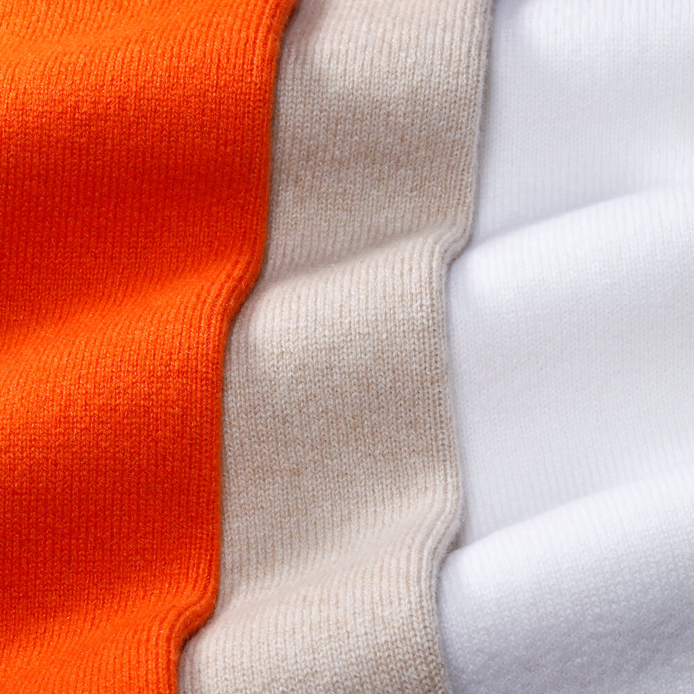 ・かなり贅沢にカシミアを使っており、見た目にもそれが伝わる仕上がりです。カシミアに定評のある" カリアッジ"の糸を通常製品と比較して2倍使用。スムース編みは、生地で言うところのダブルフェイスのような仕上がりになるため、表裏ともに肌触りが極上!肌がデリケートな方でも納得できるはず。
