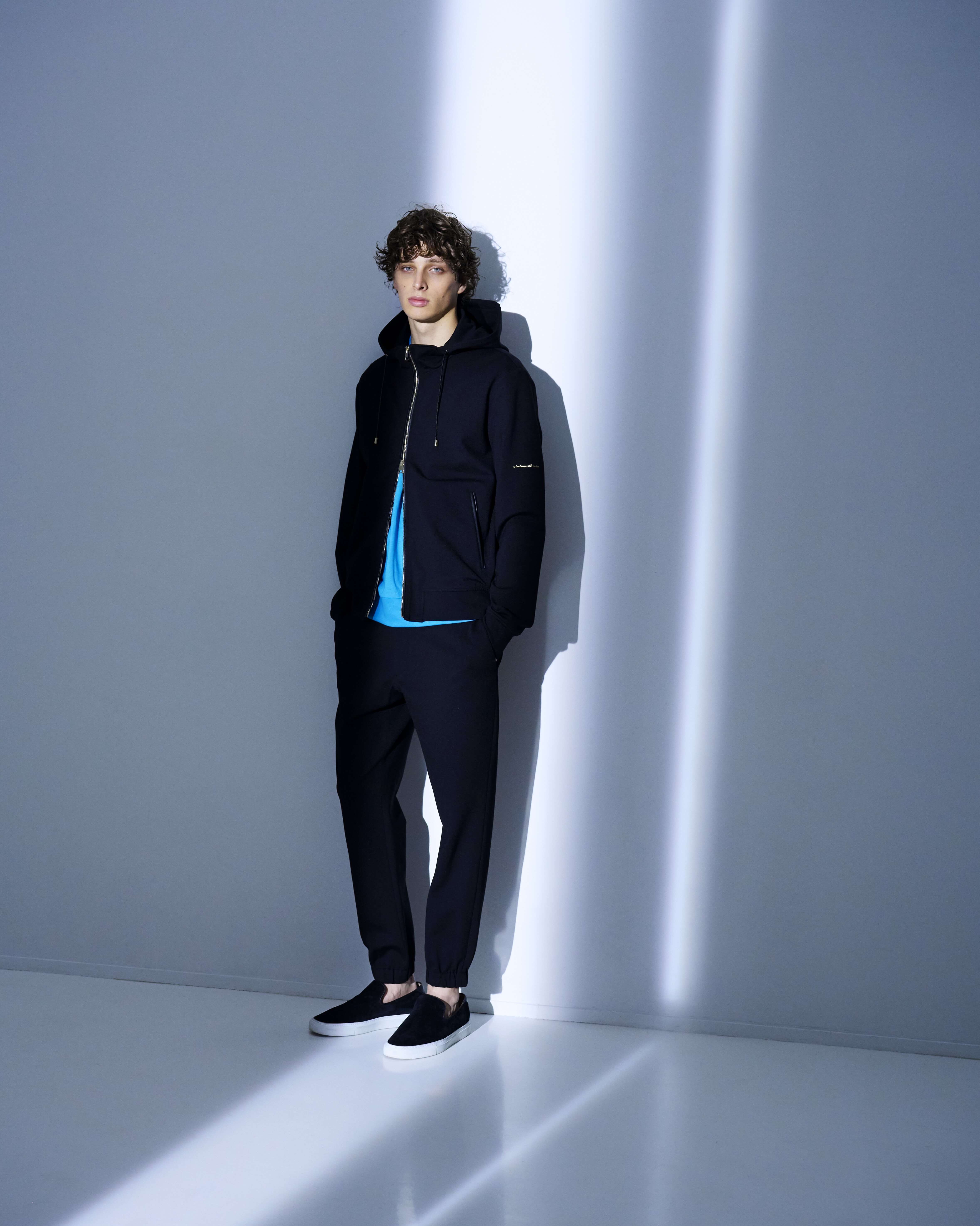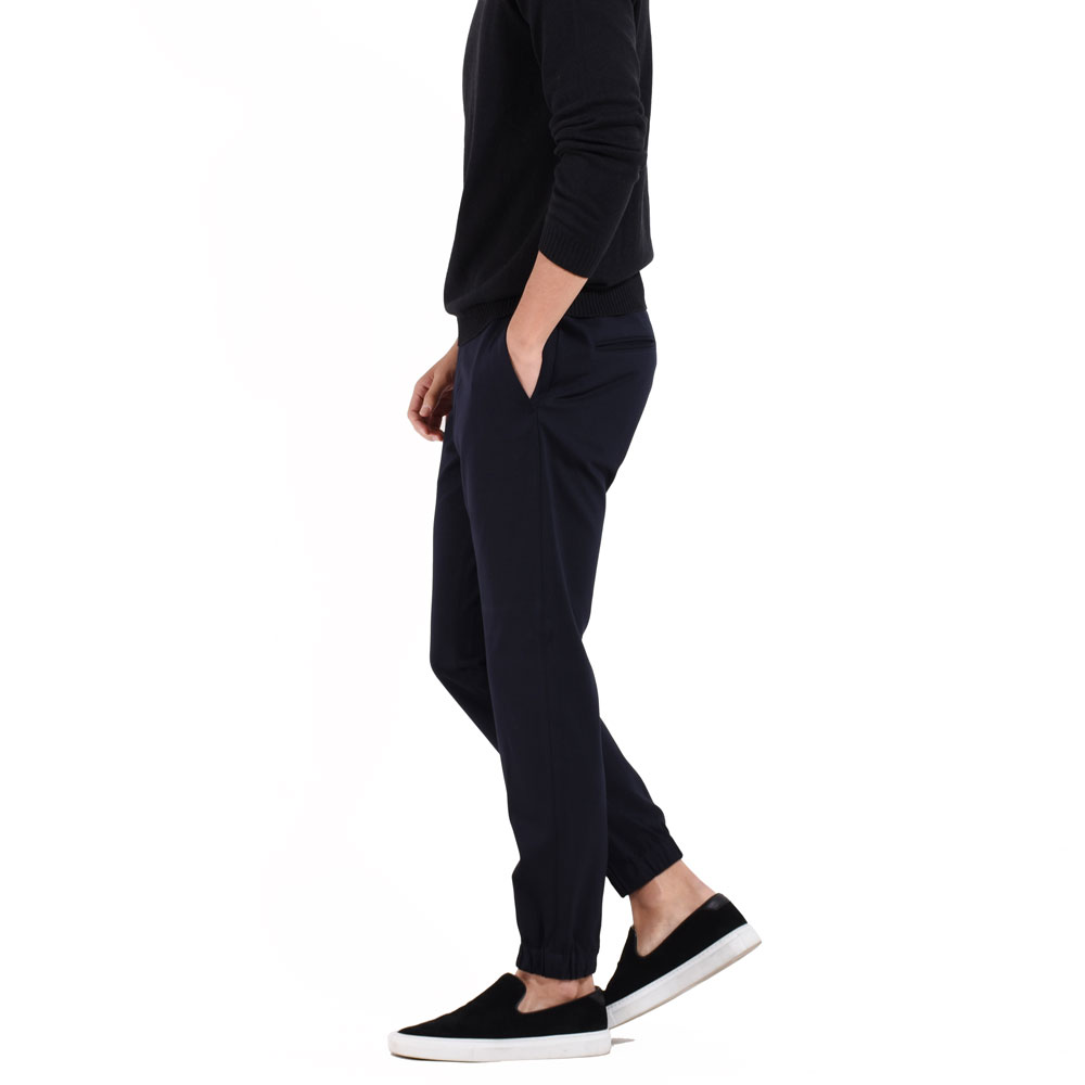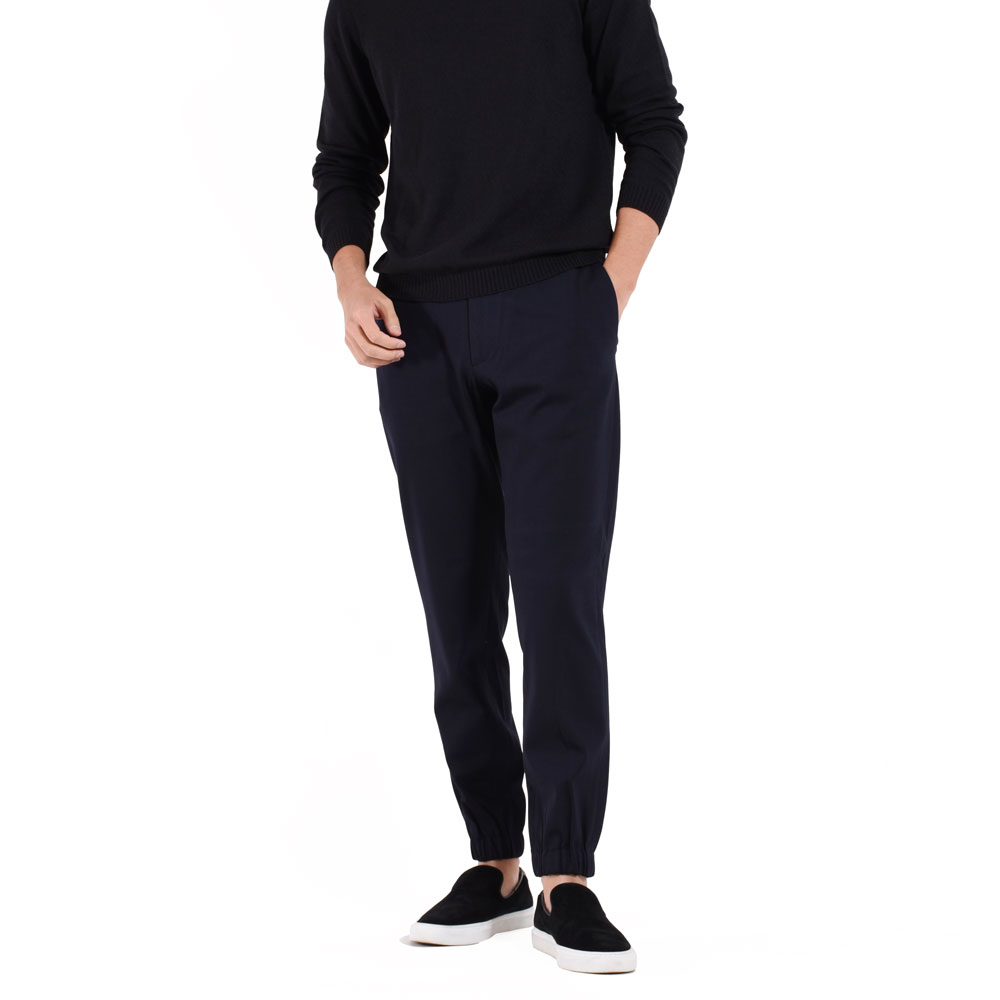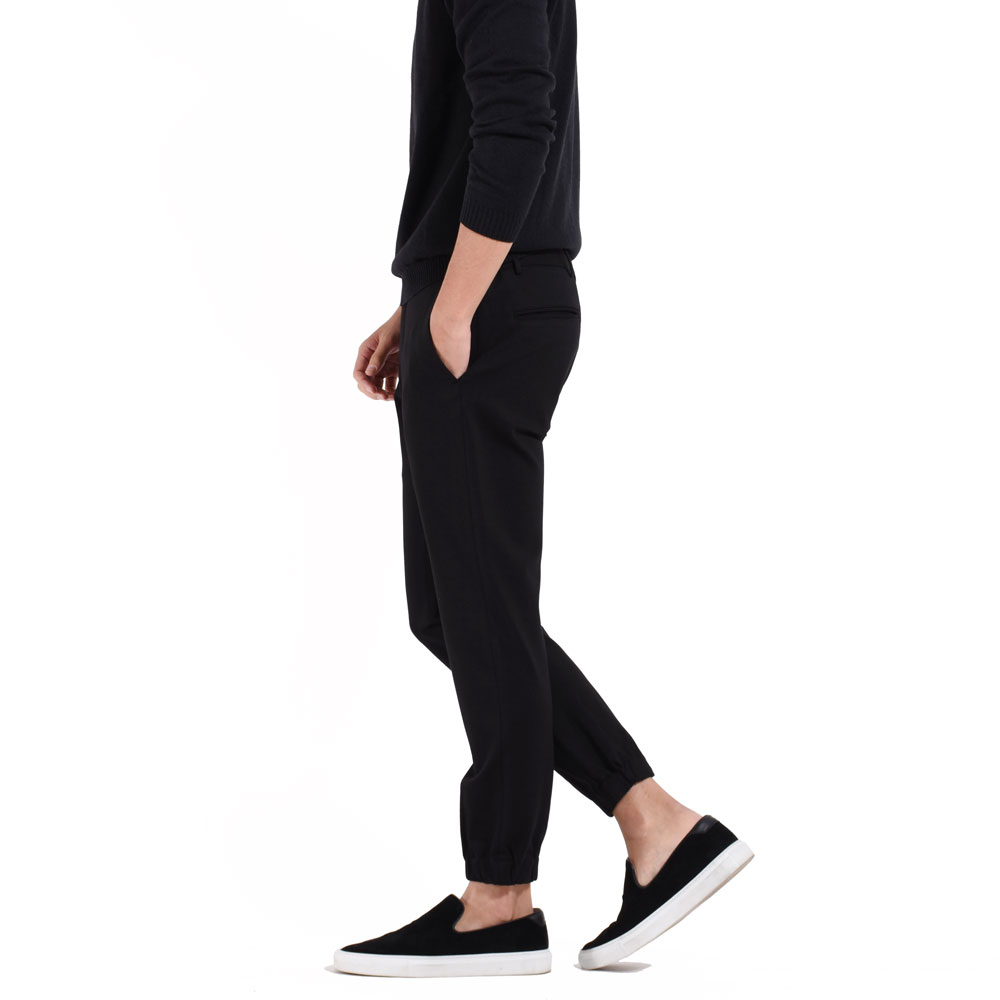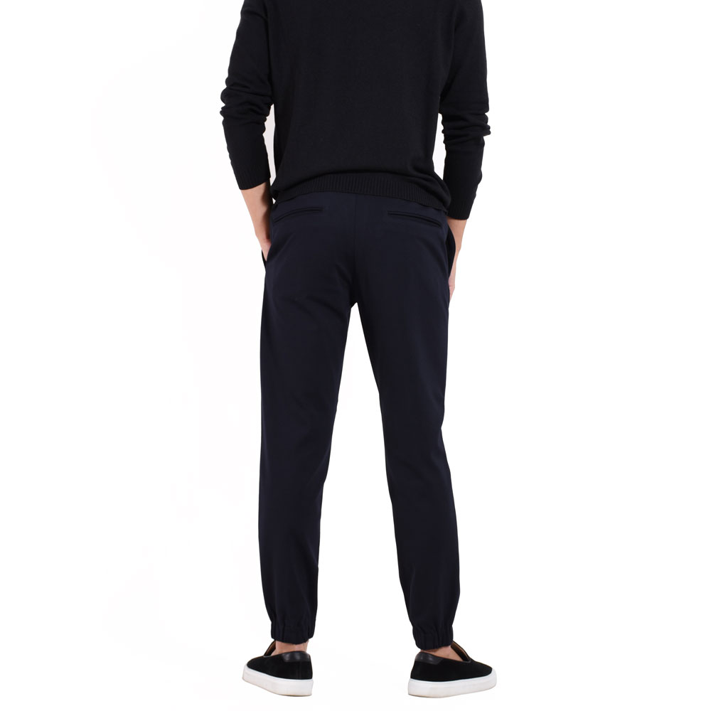 ・シルエットはスリムテーパードで裾がゴムシャーリング仕様となっていることでスポーツテイストが加速!ワタリ、膝、裾にかけてなだらかにかつ確実にテーパードしていくシルエットは「giabsarchivio(ジャブスアルキヴィオ)」ならでは。モードかつスポーティ。