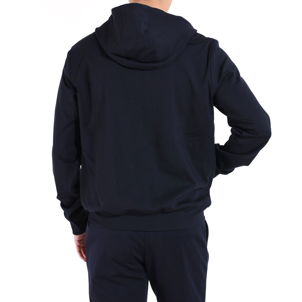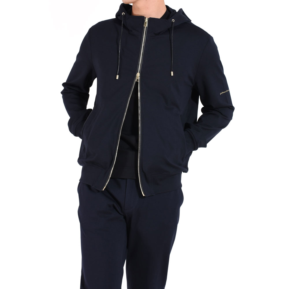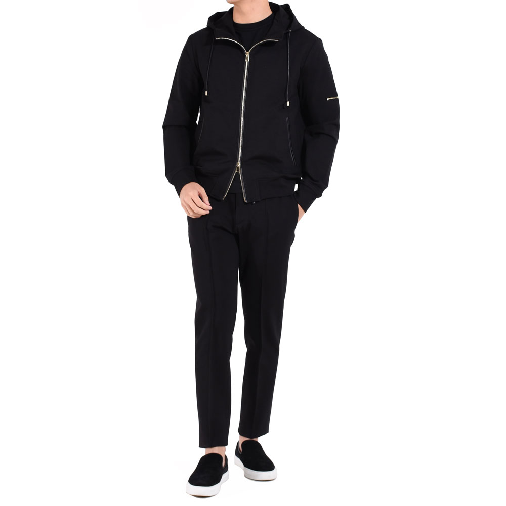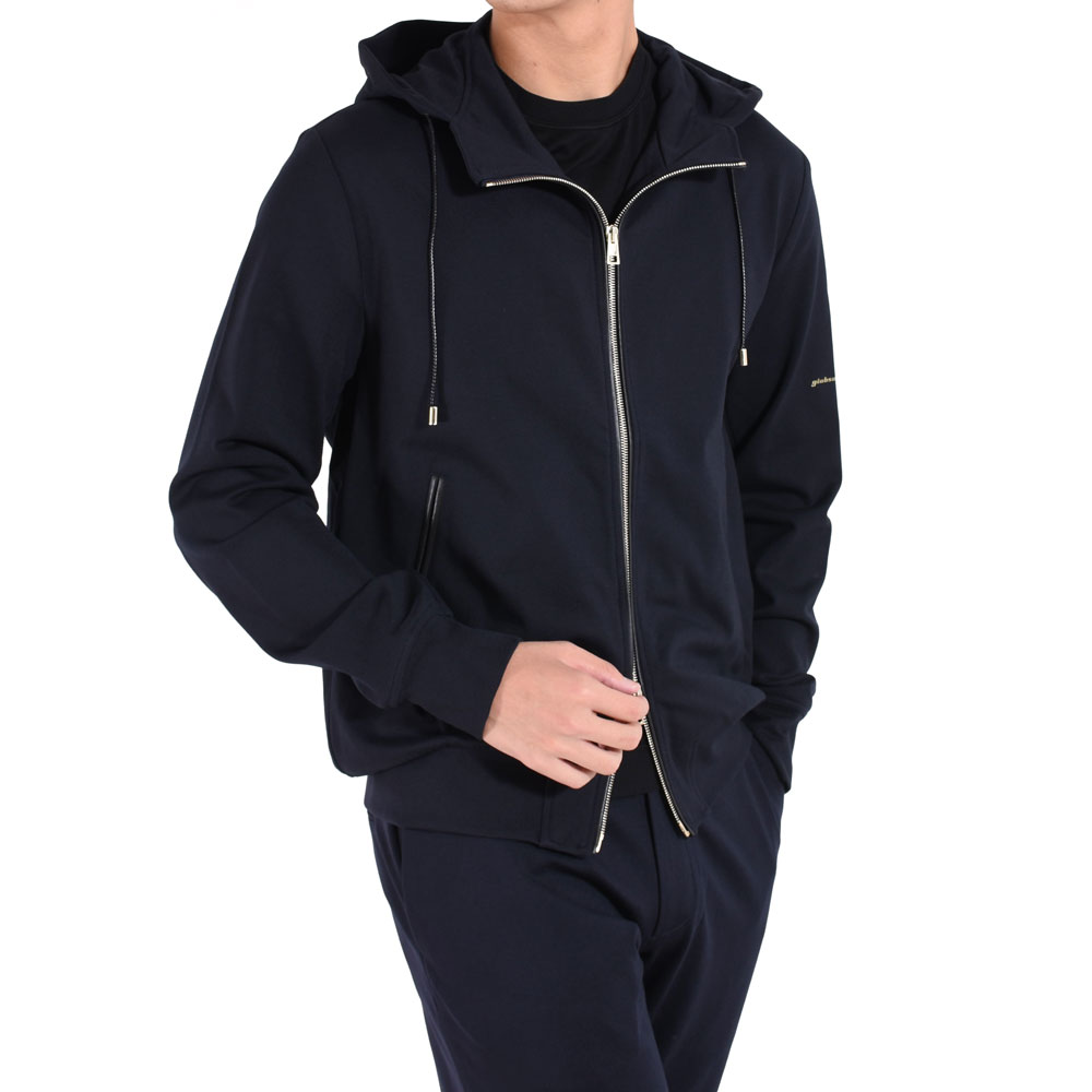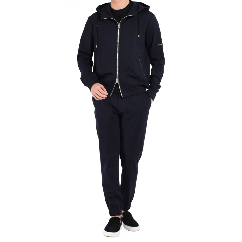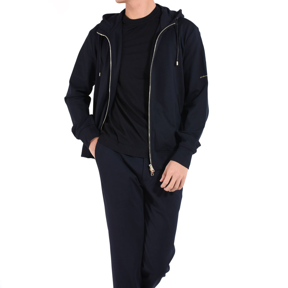 ・イタリアブランドらしくシルエットは実にスマート。首周りには台が付くことでフードの立ち上がりが適度にあり、ジップを上まで留めた際に首元をカバーするのがアメリカブランドなどのパーカーとの違いです。洗練されたシルエットとシンプルなデザインが特徴。