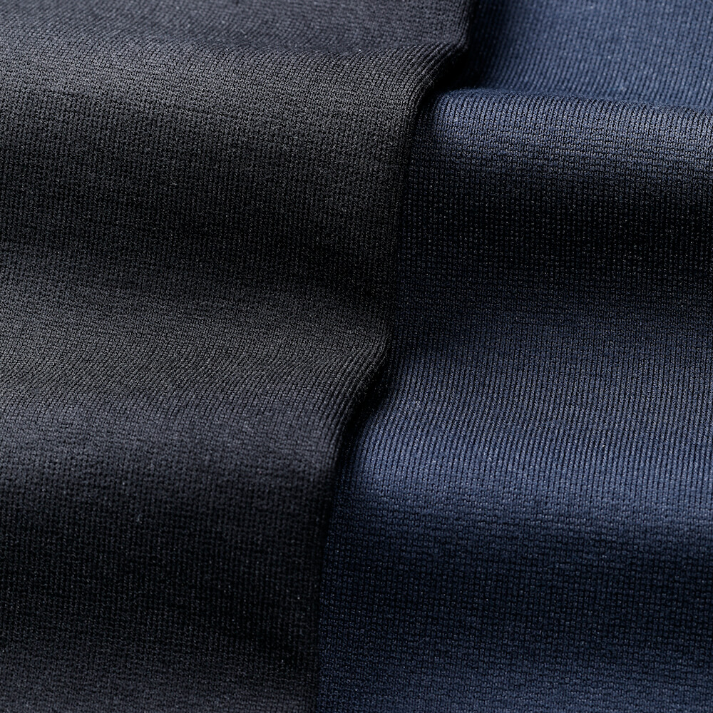・打ち込みがしっかりしているため適度なハリ感があり、ジャージーながら品のある雰囲気が特徴。もちろん伸縮性は抜群!ほぼ通年着用可能な厚みと素材感も今の時流に適しています。