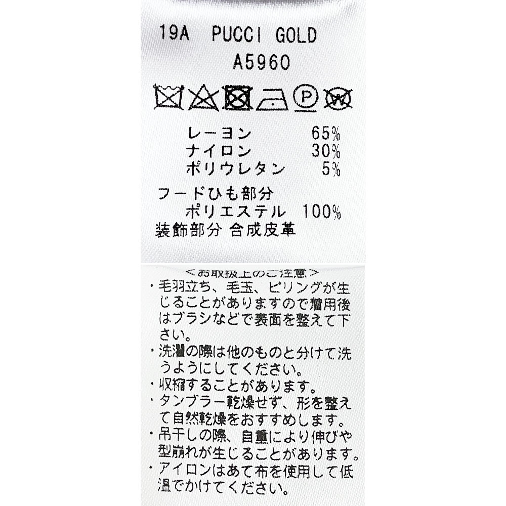 ・フード紐が通るハトメパーツ、フード紐のエンドパーツ、フロントジップをゴールドに。