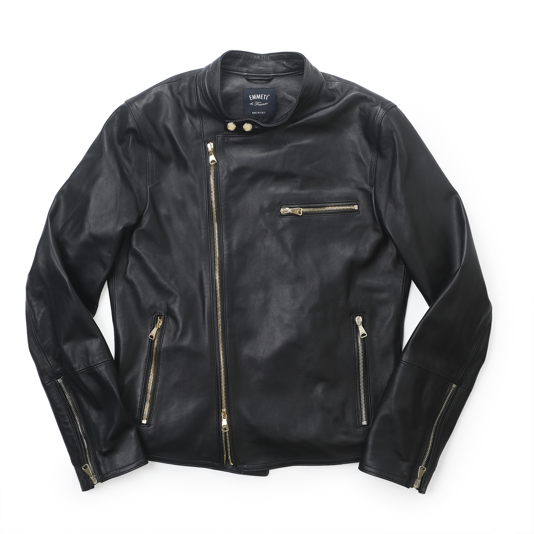 ・左袖にゴールドのロゴ入り。さりげなく映るよう、ロゴの位置や大きさを調整。