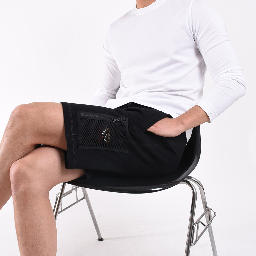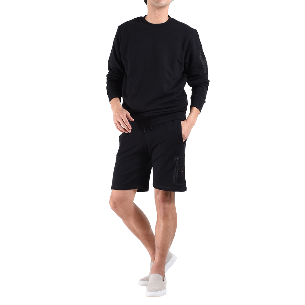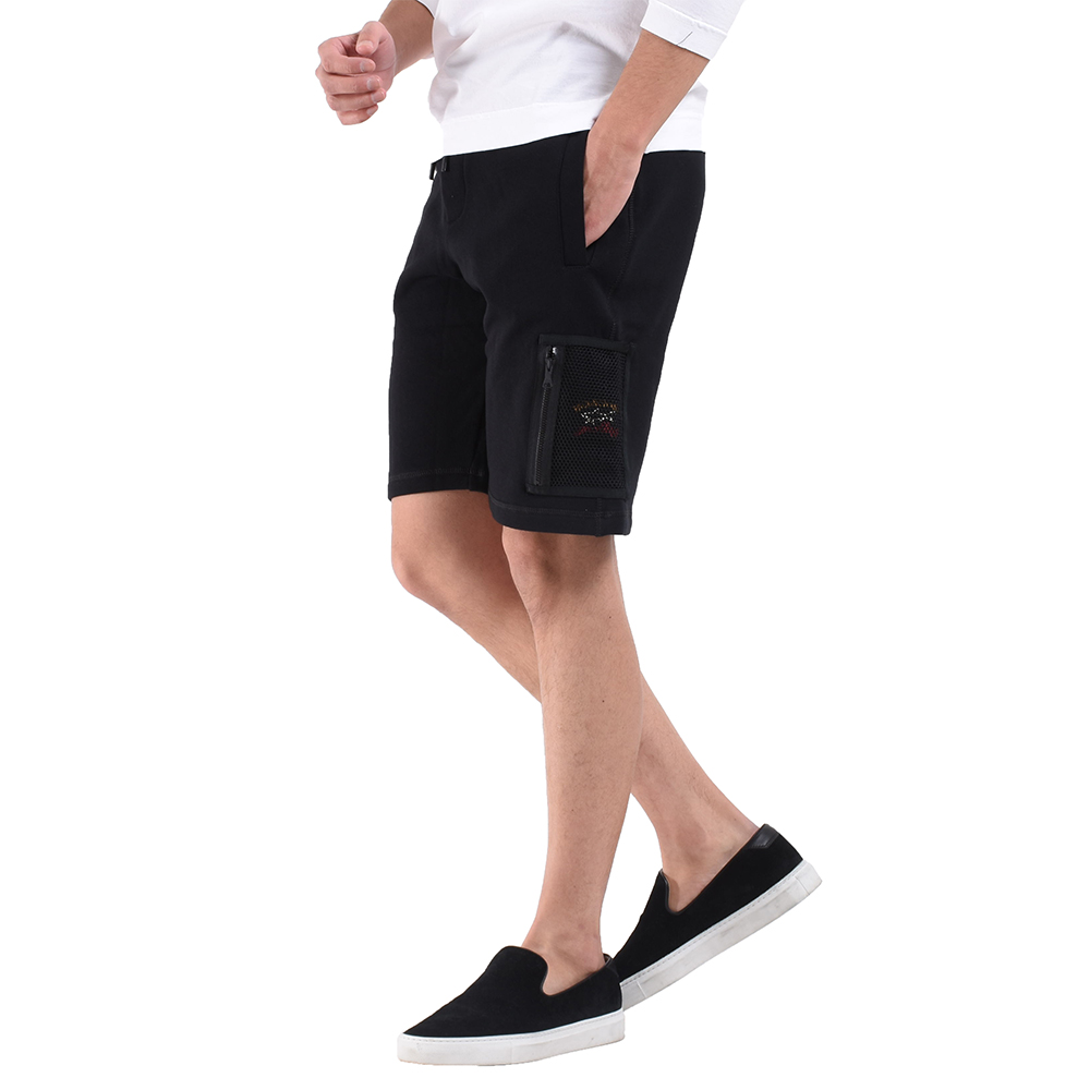 ・両サイドとヒップはスナップボタンが入口に取り付けられたポケットになっており、中に入れたモノを落としづらい仕様に。そして一つだけ取り付けられたカーゴポケットはジップ付きのメッシュ素材。ポケット内に「PAUL & SHARK(ポールアンドシャーク)」のロゴワッペンが取り付けられており、さりげないアクセントになっています。