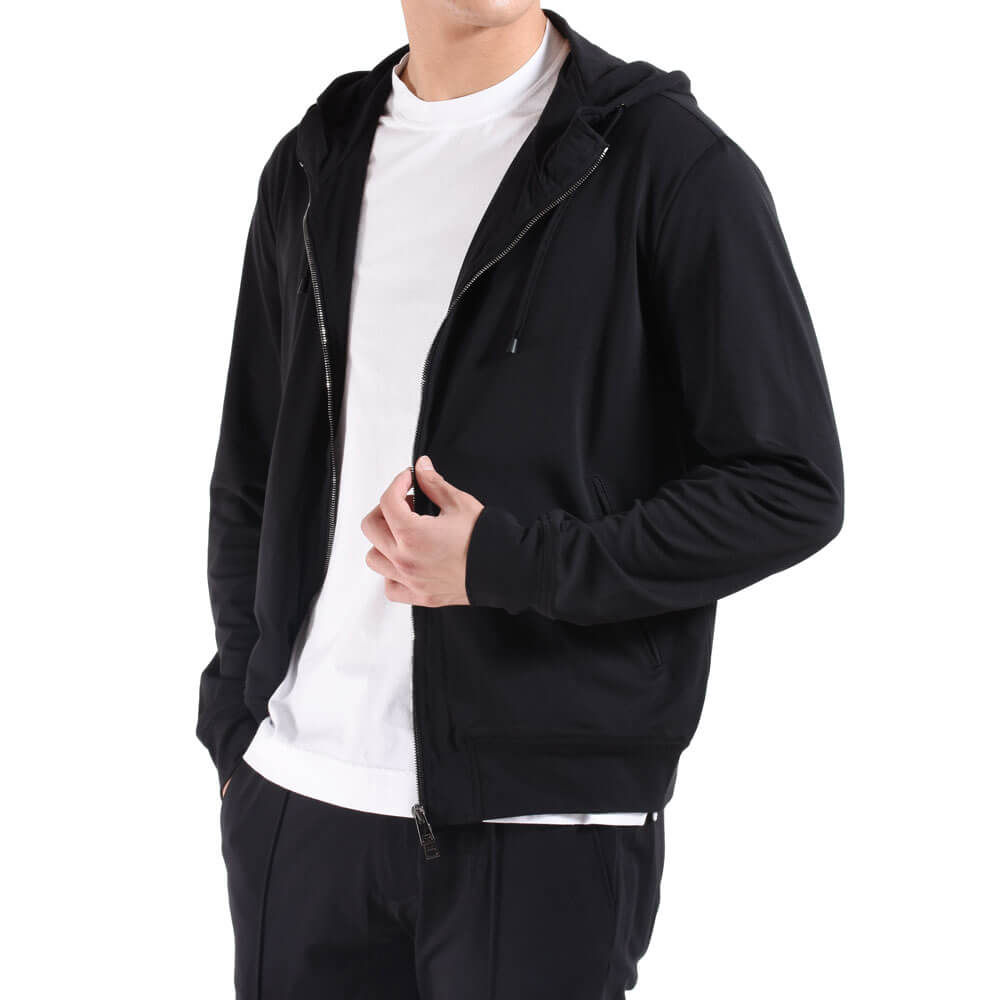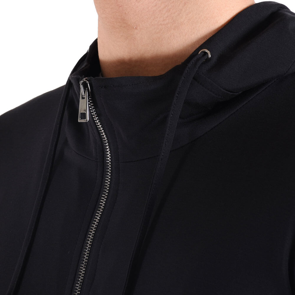 ・首周りには台が付くことでフードの立ち上がりが適度にあり、ジップを上まで留めた際に首元をカバーするのがアメリカブランドなどのパーカーとの違いです。洗練されたシルエットとシンプルなデザインが特徴。