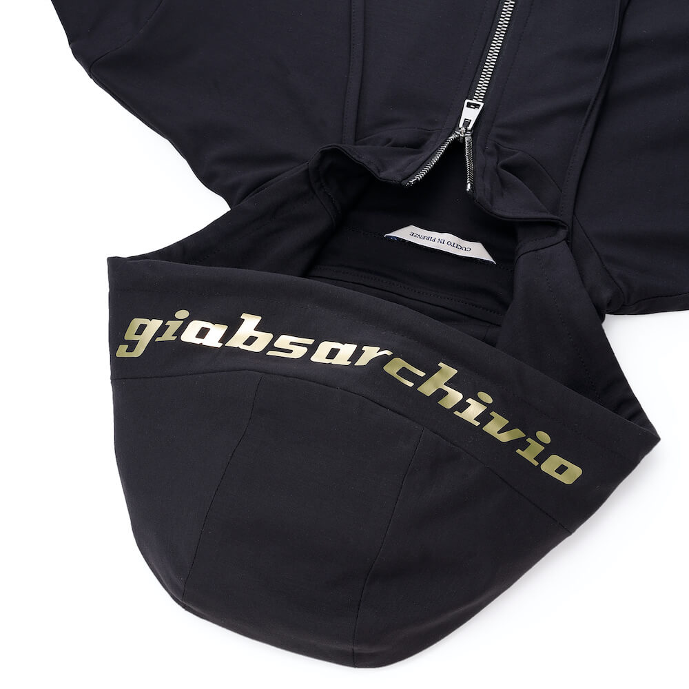 ・このプリントを入れるリクエストに対して、「giabsarchivio(ジャブスアルキヴィオ)」はフードのパターンを通常の"PUCCI"から変更。ロゴプリント部分に縫い目が無いようモノ作りへのこだわりを発揮してくれました。