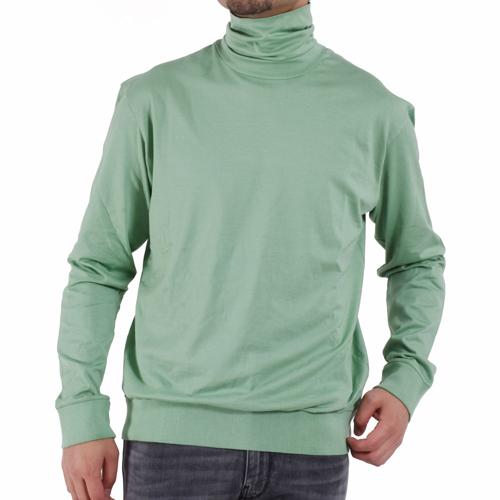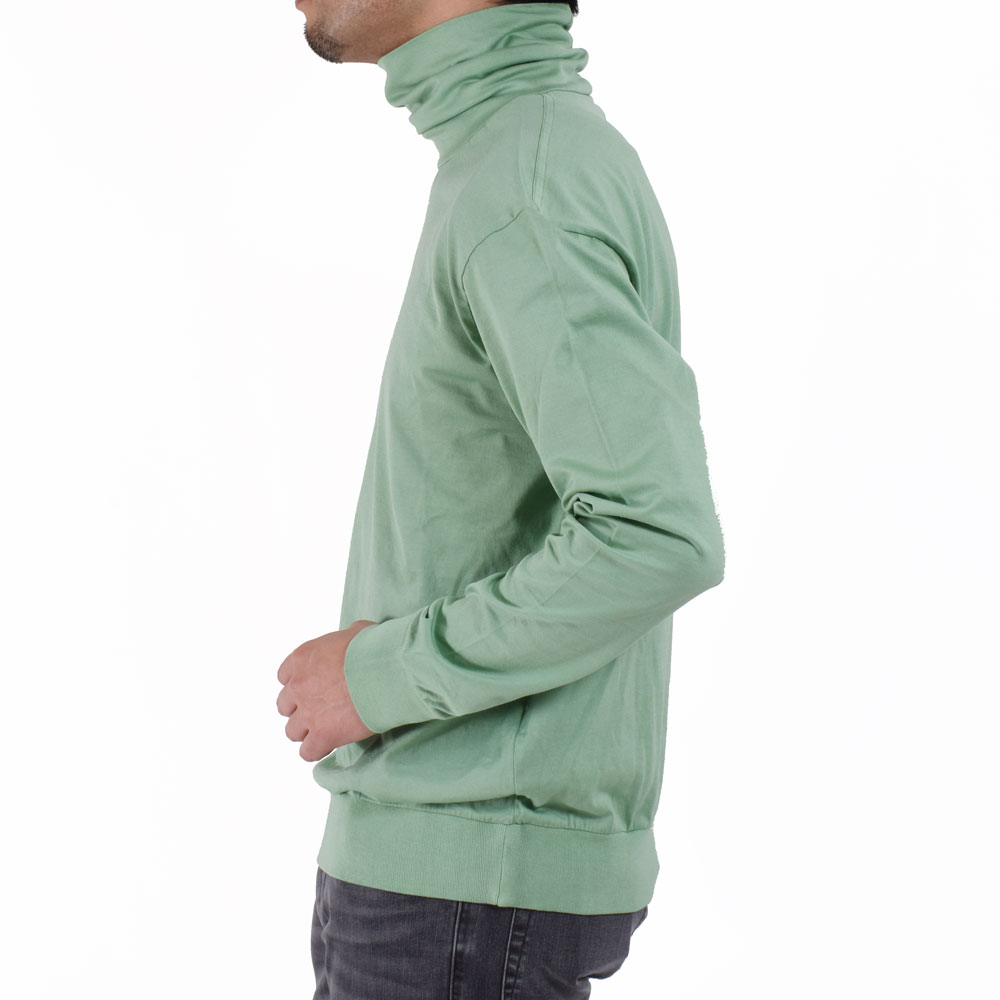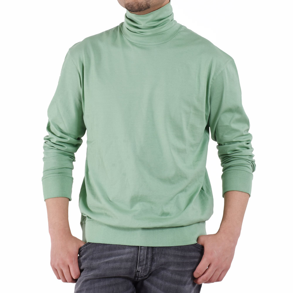 ・コットンタートルカットソーというのは意外と?馴染みのないアイテムかもしれません。しかし、ファッション業界人には愛用者が多いのです。なぜなら着るだけで洒落た印象を与える便利アイテムだから。タートルニット感覚でジャケットやスーツのインナーの場合はキレイに折って。一枚やカジュアルシャツのインナーに合わせる際は折らずにクシュクシュっとさせる、といったアレンジが可能。着用できる期間もほぼオールシーズンです。