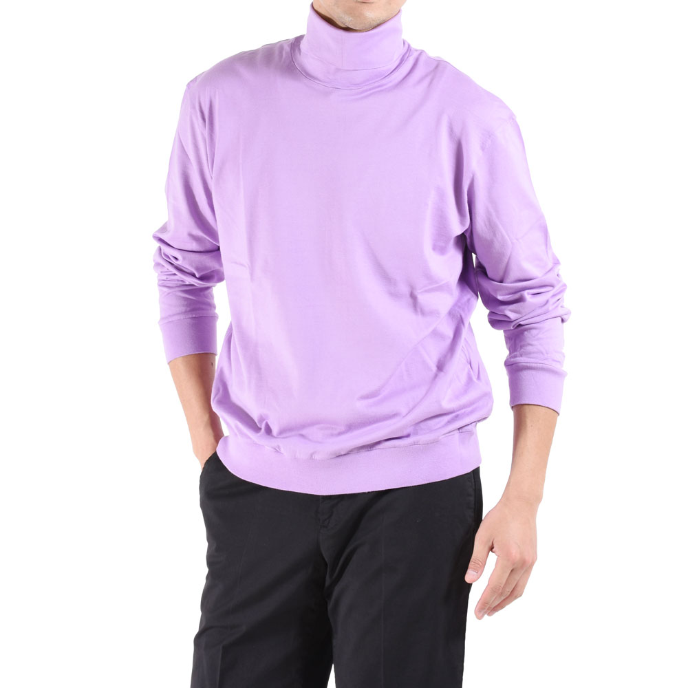 ・ご自宅での着用はもちろんのこと、そのまま外出しても見映えは十分。また、ジャケットやブルゾンのインナーにもピッタリ!長袖なので袖裏地が肌に触れることがなく、リブ付きなので袖や裾がジャケットやブルゾンから出過ぎてしまうということもありません。もちろんカットソーなのでイージーケアです。タートルネックの他、クルーネックとVネックもご用意しました。