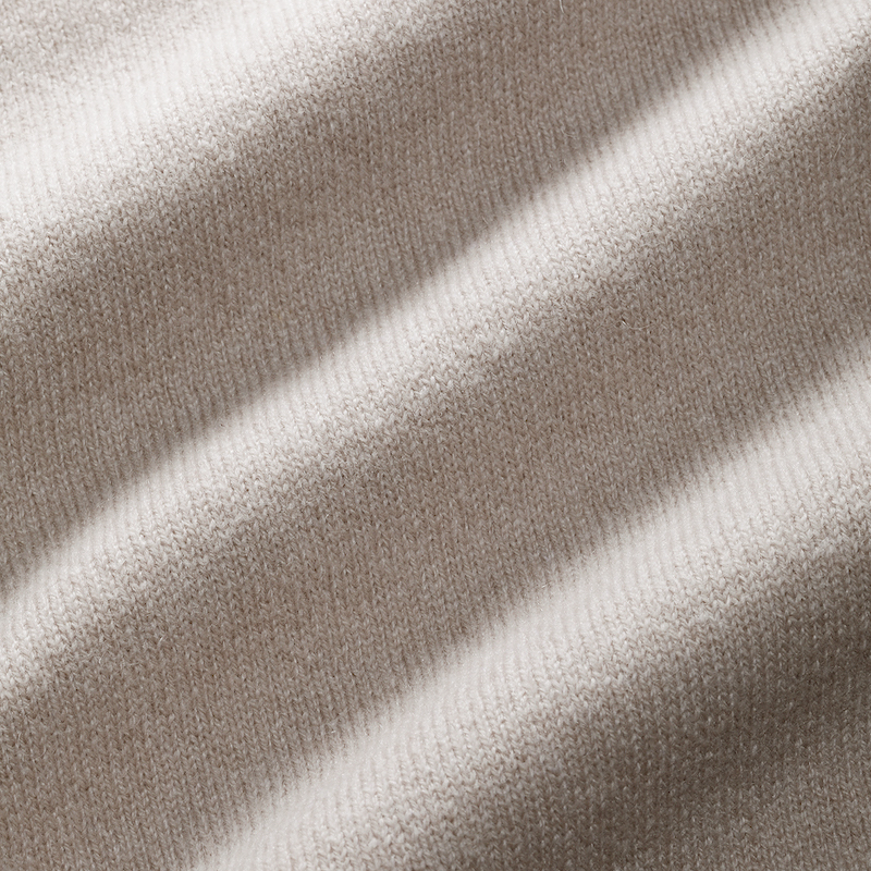 ・かなり贅沢にカシミアを使っており、見た目にもそれが伝わる仕上がりです。カシミアに定評のある" カリアッジ"の糸を通常製品と比較して2倍使用。スムース編みは、生地で言うところのダブルフェイスのような仕上がりになるため、表裏ともに肌触りが極上!肌がデリケートな方でも納得できるはず。