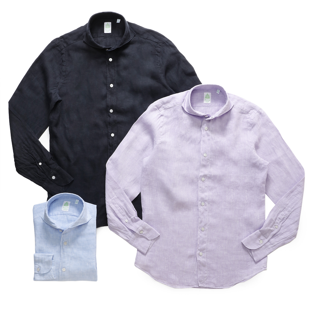 ・狭めな肩幅が特徴的な「Finamore (フィナモレ)」のシャツは、その肩幅からは想像も出来ないほど動き易く、フィット感に長けています。その秘密はいせ込み+前ふりの袖付け。フィット感はありながら、身体にまったくストレスを与えず、極上の着心地です。