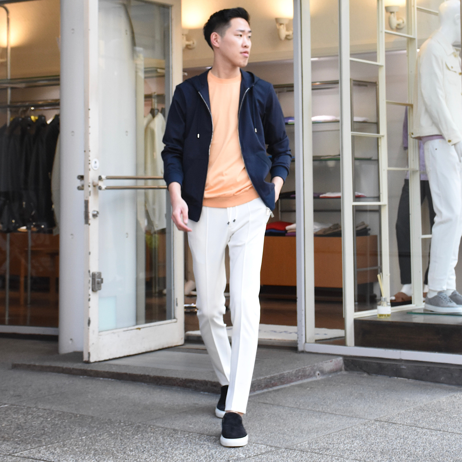 ・トラウザースにスポーティなデザインや素材を取り入れたgiabsarchivio(ジャブスアルキヴィオ)の"MASACCIO/M1(マサッチョ)"は、まさに進化系パンツの代表格。まだ足を通したことがない、という方はぜひ。ブラック / ネイビー、ホワイト / チャコールグレーの4色をラインナップしました。