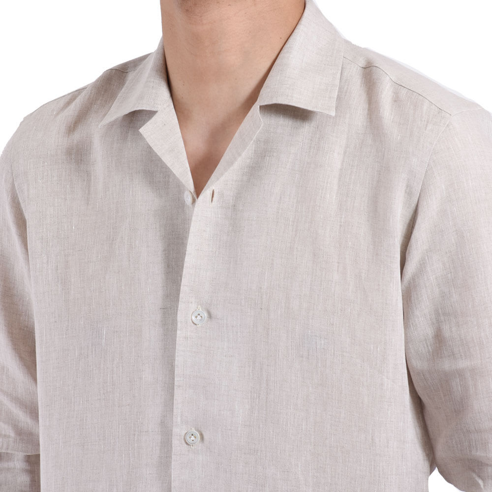 肌あたりの良いリネンを使っていますので、ゴワつきがなく着心地が◎。休日はもちろんのことリモートワーク等でも使い勝手がよく、色違いで何枚も欲しくなるシャツです。イタリアっぽい色気を出すなら素肌に着てよし、敢えてTシャツを挟んで着てもOK。