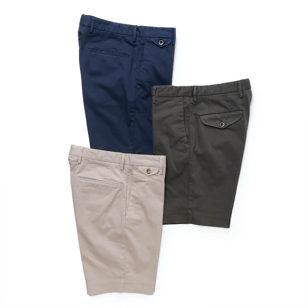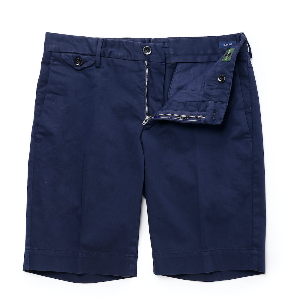 ・こちらは永遠の定番と言える「INCOTEX(インコテックス)」"SLIM FIT"モデルのショーツ。どなたが穿いてもスマートに見える魔法のシルエットで、膝より少し上に設定された丈の長さが絶妙。パンツ専業として培った技術と経験が注ぎ込まれた抜群の完成度を誇ります。