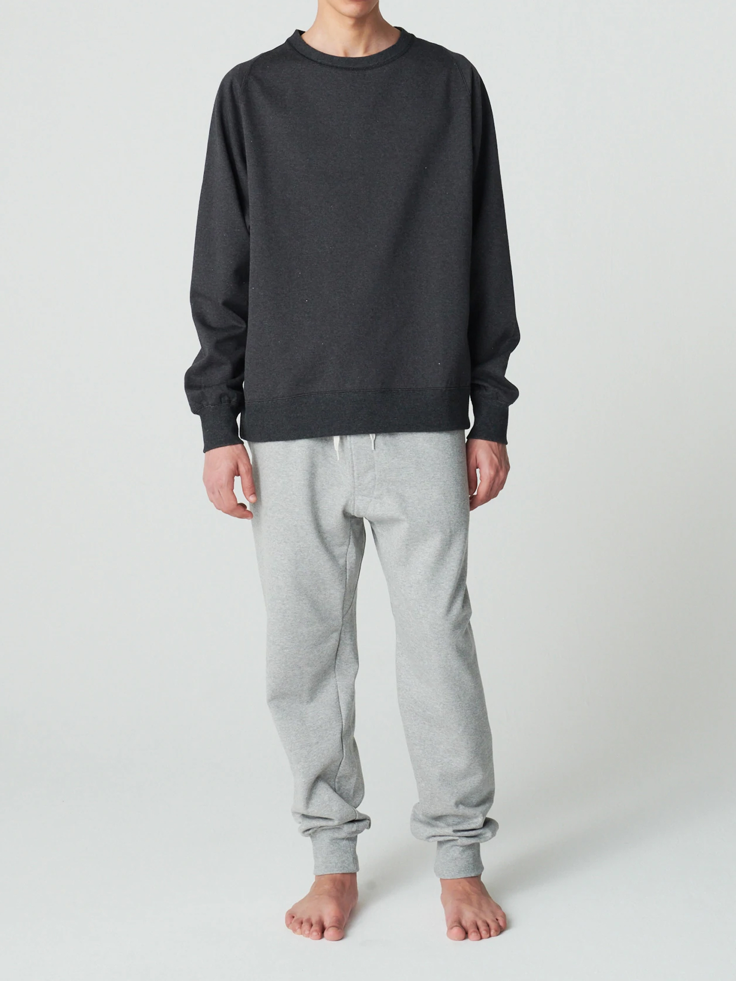 シしっかりコシがあるから美しい。だらしなくないジェンツのスェットパンツです。シルク100%の裏毛につつまれる幸せ。外はカリッと、中はしっとり。まるでアルデンテのようなスェット生地を開発しました。肌に触れるのは起毛した100%シルクの裏毛。保温性の高さはもちろんのこと、着心地はやわらかでふかふか。表側になるのは、コットンのMVS糸。綿を圧縮空気の旋回によって紡績しているため、ケバが立ちにくくしっかりとしたコシ感。ウェストマークには高密度に織りこまれたコットンを採用。ベルトがなくてもだらしない印象一切なし。ヒップ上部から大胆に3パーツで仕上げた股ガゼットにより、足運びをスムースにするだけでなく、もたつかない美しいヒップラインを実現しました。