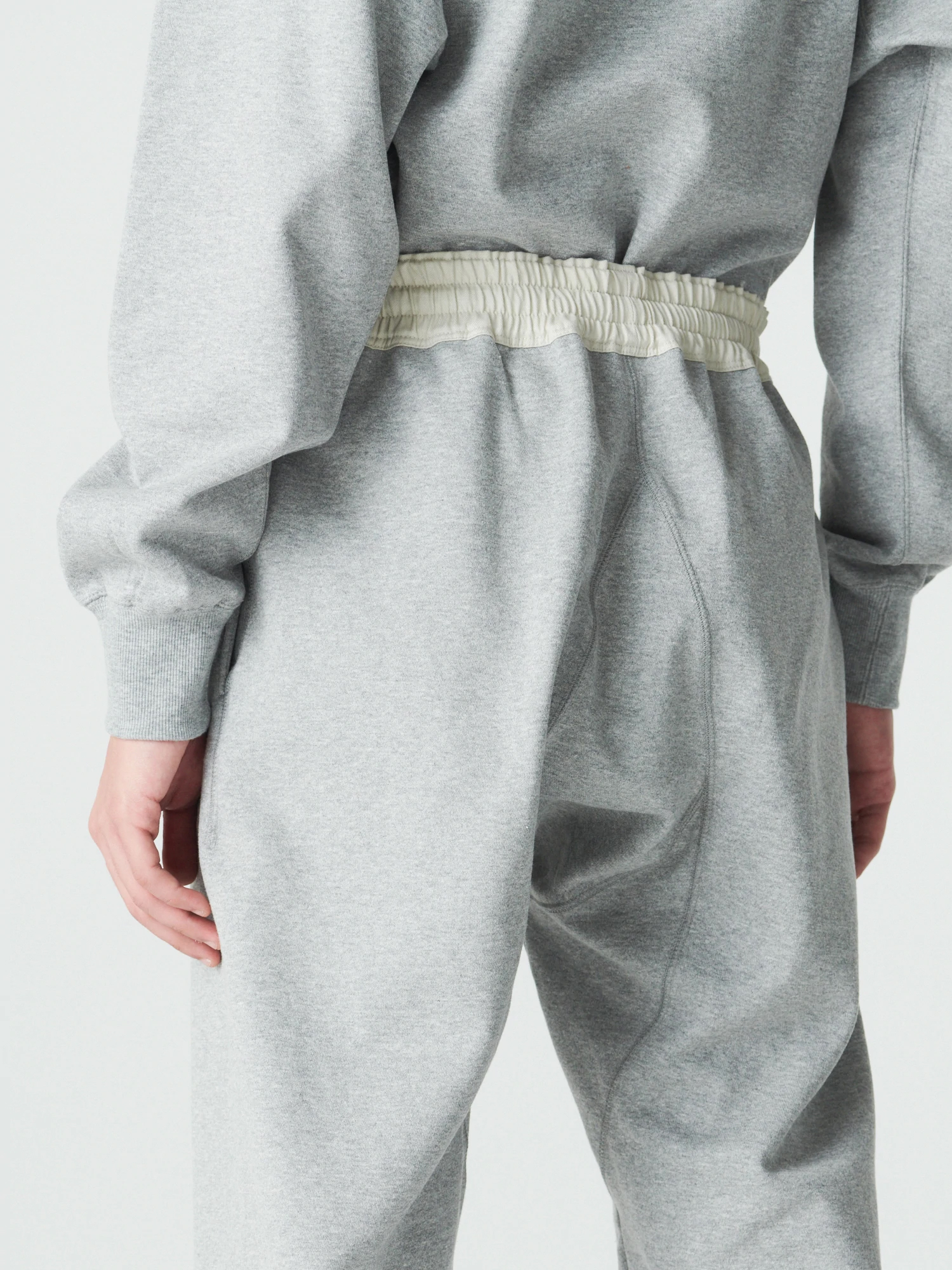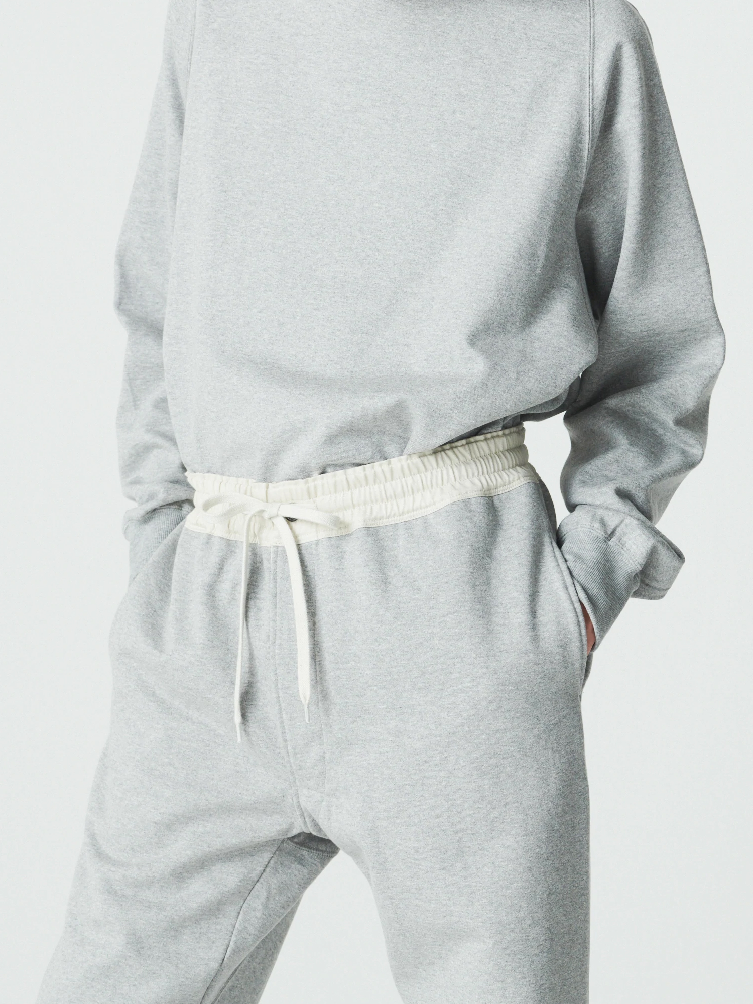 シしっかりコシがあるから美しい。だらしなくないジェンツのスェットパンツです。シルク100%の裏毛につつまれる幸せ。外はカリッと、中はしっとり。まるでアルデンテのようなスェット生地を開発しました。肌に触れるのは起毛した100%シルクの裏毛。保温性の高さはもちろんのこと、着心地はやわらかでふかふか。表側になるのは、コットンのMVS糸。綿を圧縮空気の旋回によって紡績しているため、ケバが立ちにくくしっかりとしたコシ感。ウェストマークには高密度に織りこまれたコットンを採用。ベルトがなくてもだらしない印象一切なし。ヒップ上部から大胆に3パーツで仕上げた股ガゼットにより、足運びをスムースにするだけでなく、もたつかない美しいヒップラインを実現しました。