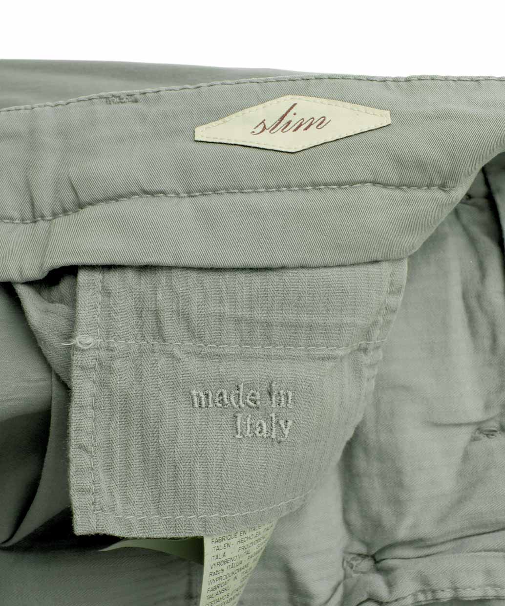 片玉縁ポケットとコインポケットを配したスラックスライクな表情に、BRIGLIA刻印のオリジナルボタンがさりげないクラス感を添えます。