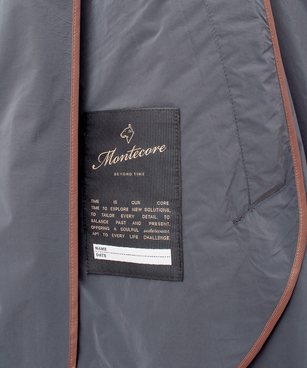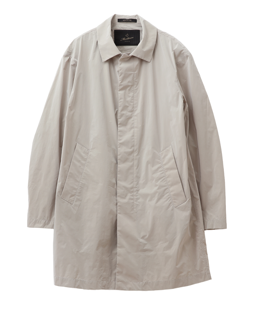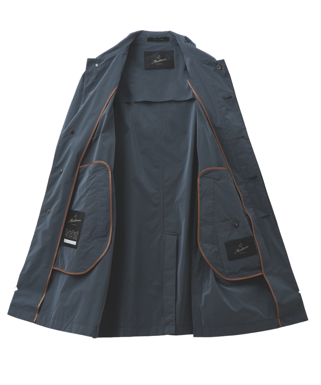 丈感は長すぎず、日常使いしやすいバランスに設計。実用性を重視しながらも、すっきりとしたシルエットで大人らしい佇まいを演出します。生地表面には撥水加工を施し、天候の変化にも対応。軽快に羽織れるため、通勤や外出時にも頼れる一着です。