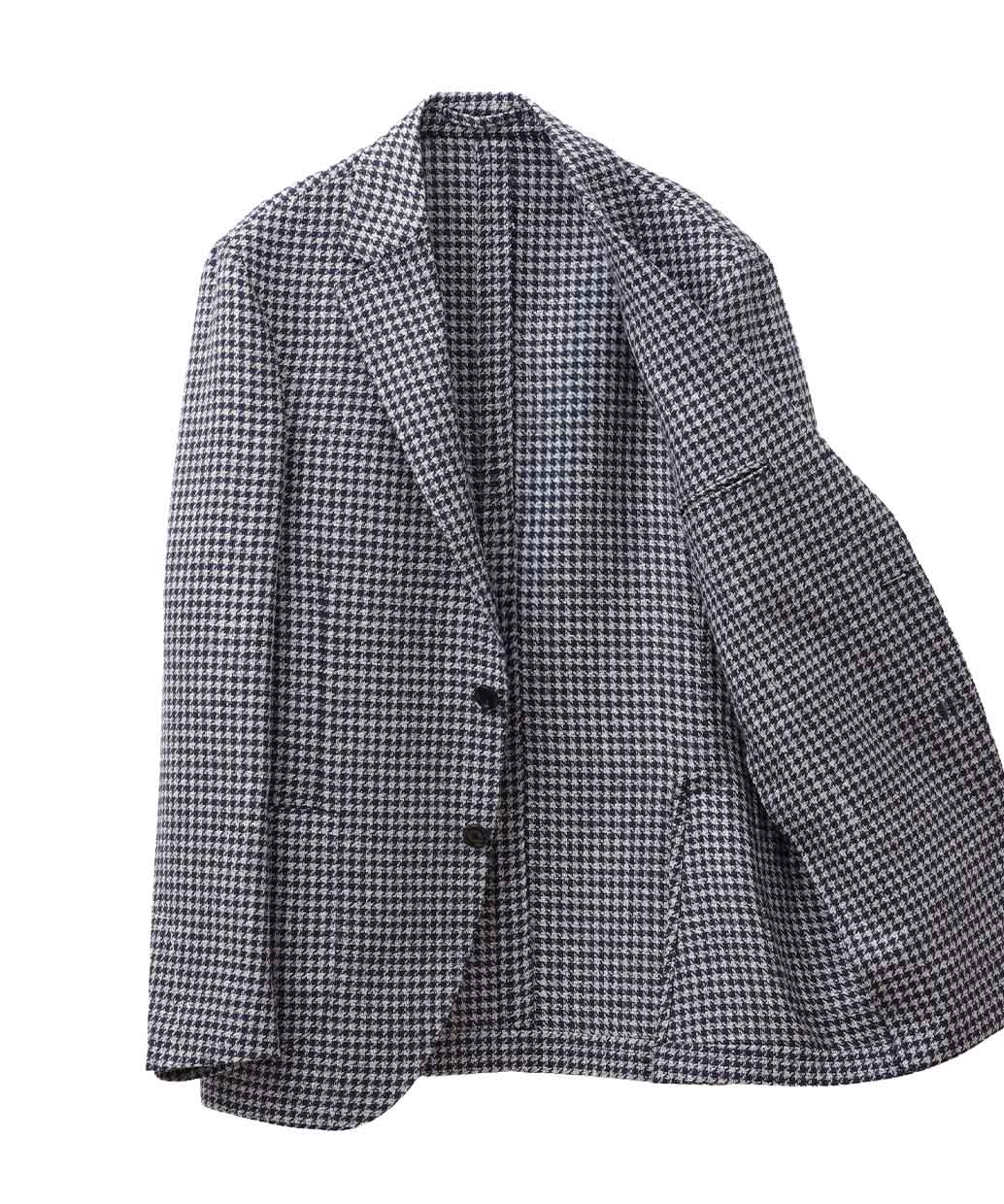 ナチュラルな表情と軽やかな着心地を備えたハウンドトゥースジャケット。