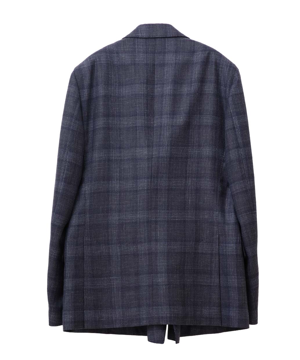 バージンウールにシルクとリネンを混紡したハイツイスト糸を使用し、ざっくりと織り上げたグレンチェック柄の生地で仕立てたジャケットです。LARDINIらしさが際立つ美しく構築されたシルエットが特徴の”ICONIC”。