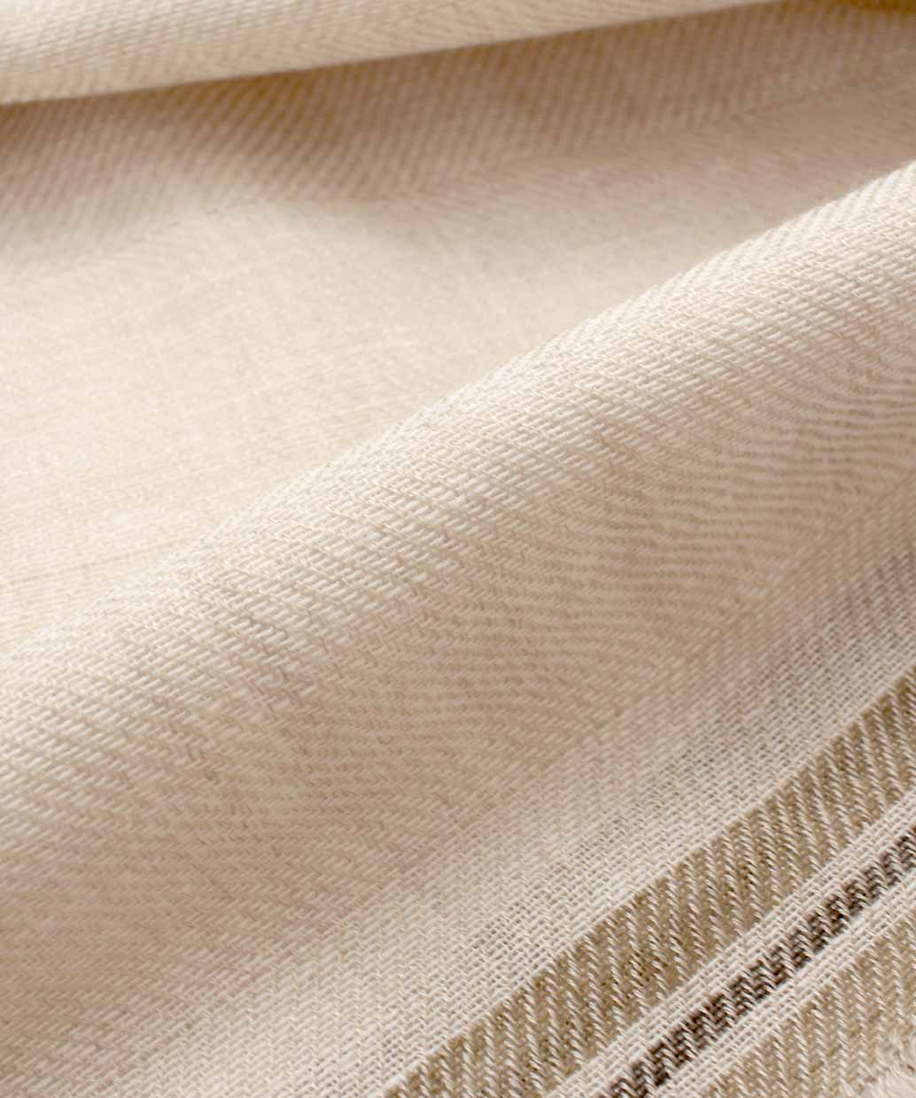 カシミヤ、コットン、リネン、シルクをブレンドした贅沢な素材使いにより、やわらかな肌当たりとしなやかな風合いを実現。異なる素材が織りなす奥行きのある表情と上品な質感が、ラグジュアリーな印象を引き立てます。