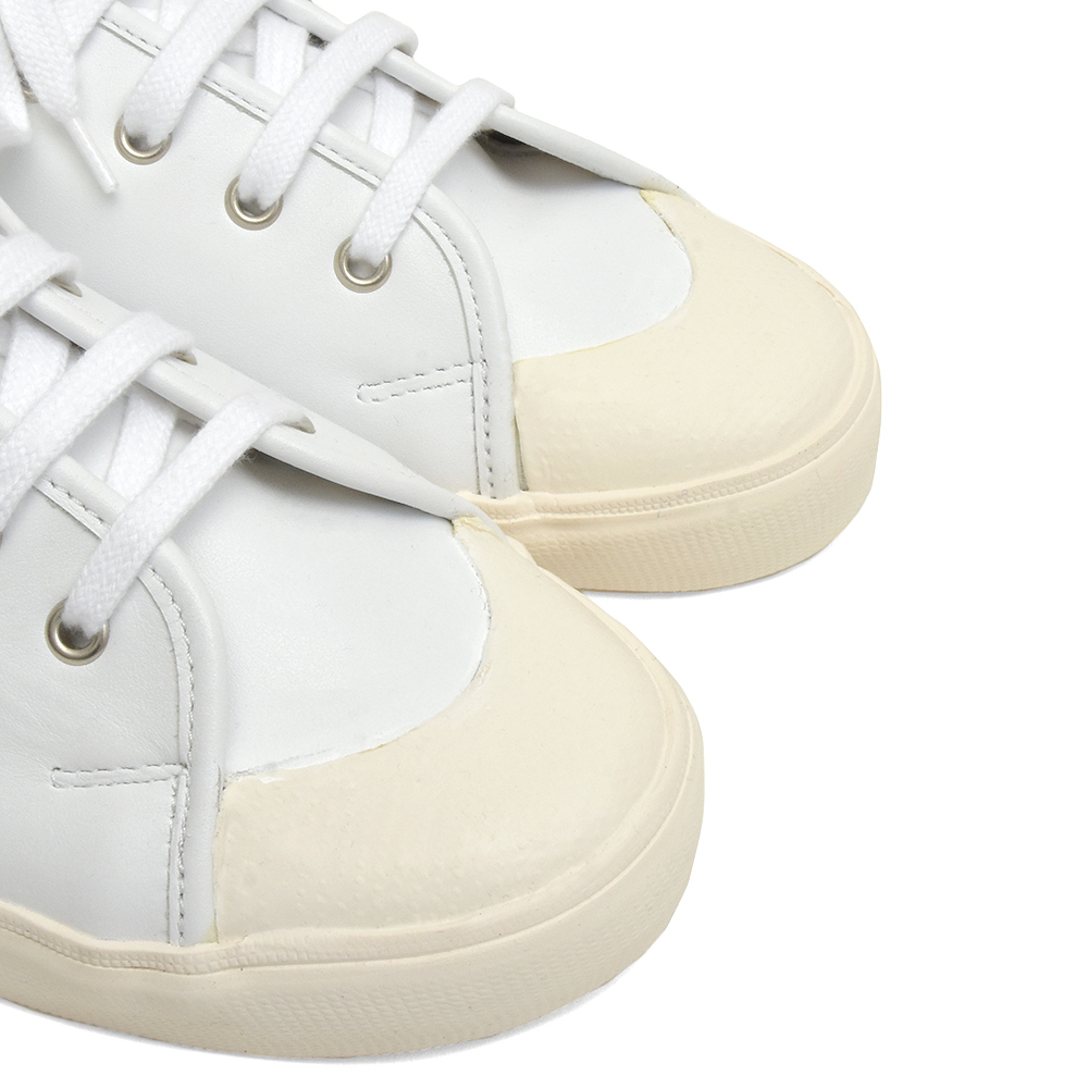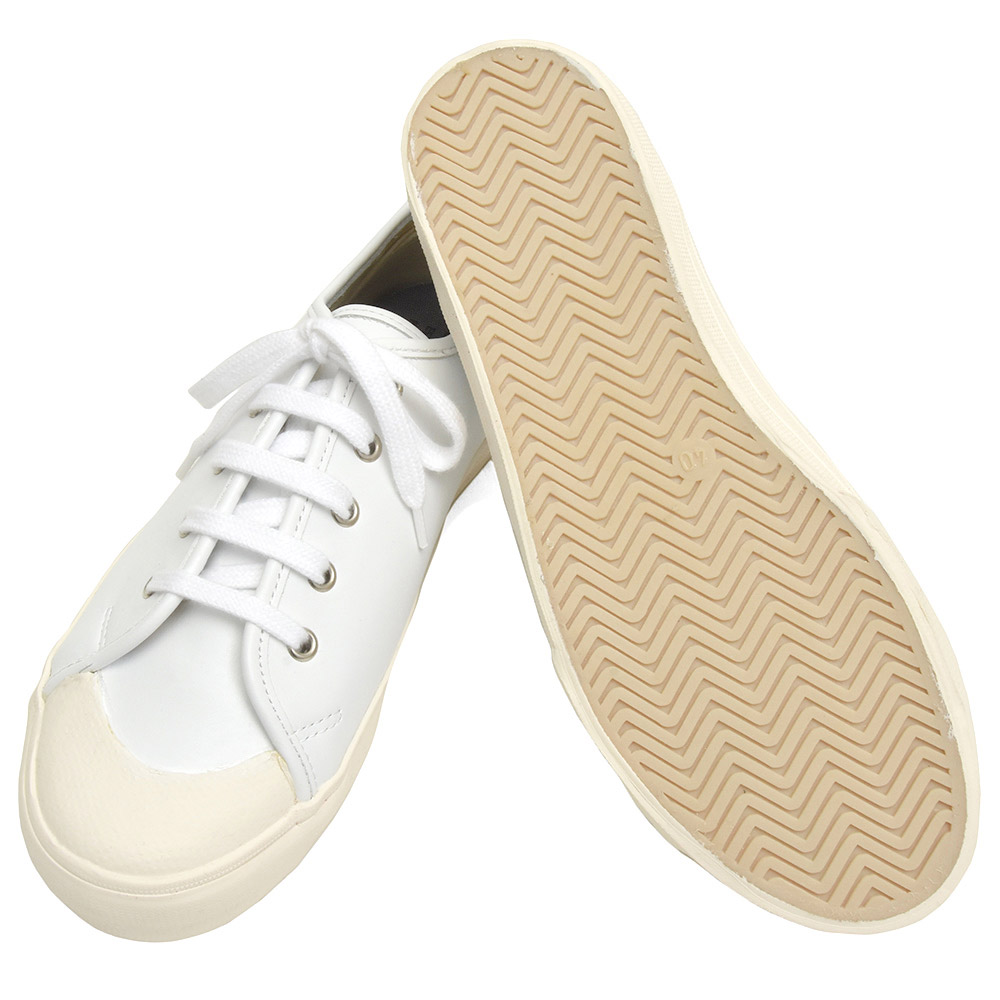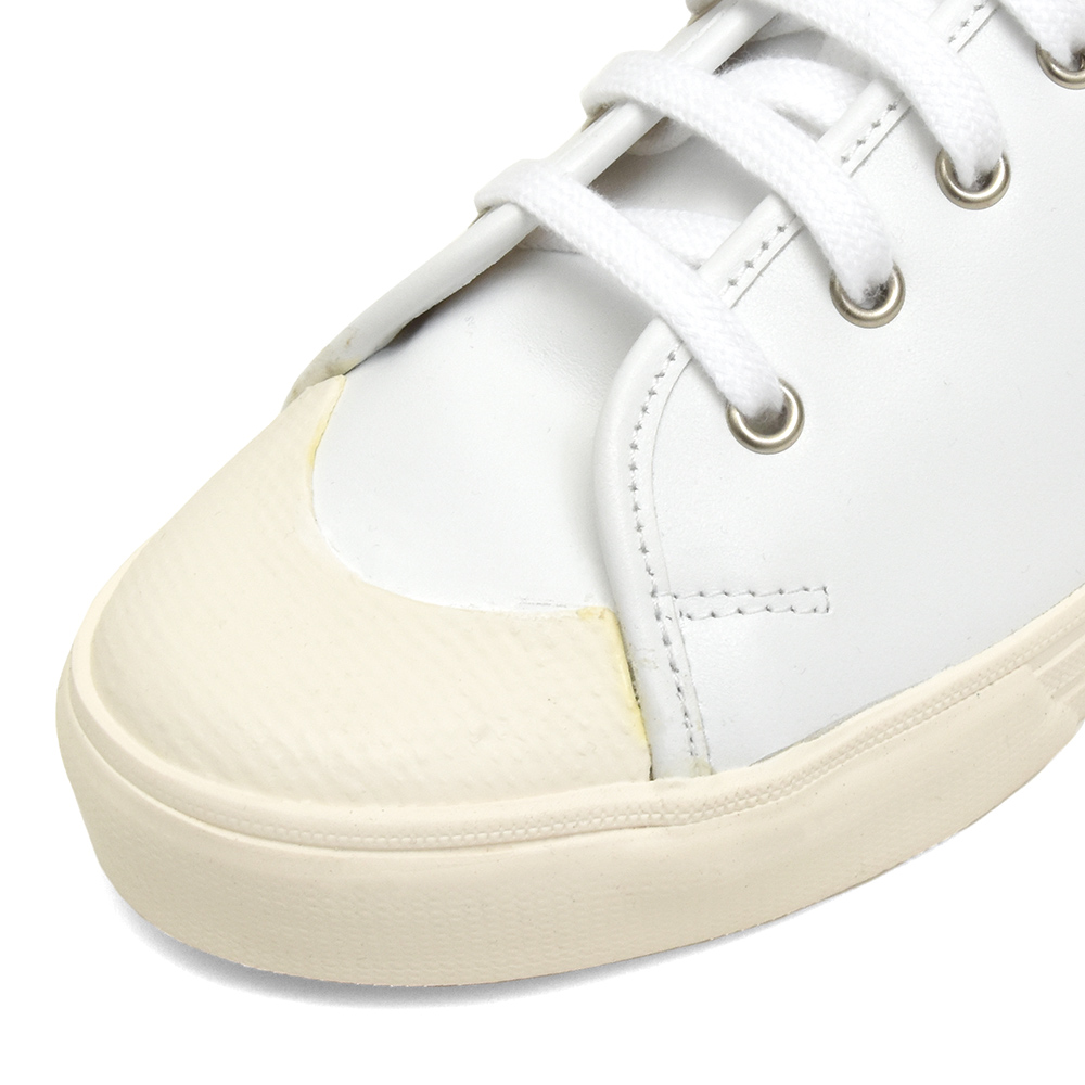 本来はキャンバスボディのところ、イタリアンレザーを用いることで上品さをプラスしているわけなんですが、特徴的なトゥのラバー使いにより何とも言えないレトロ感が生まれていて、ここにしかないバランスの雰囲気に仕上がっています。