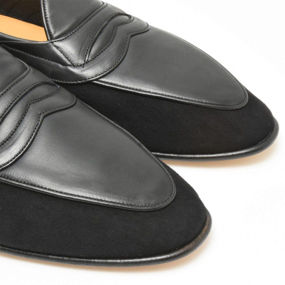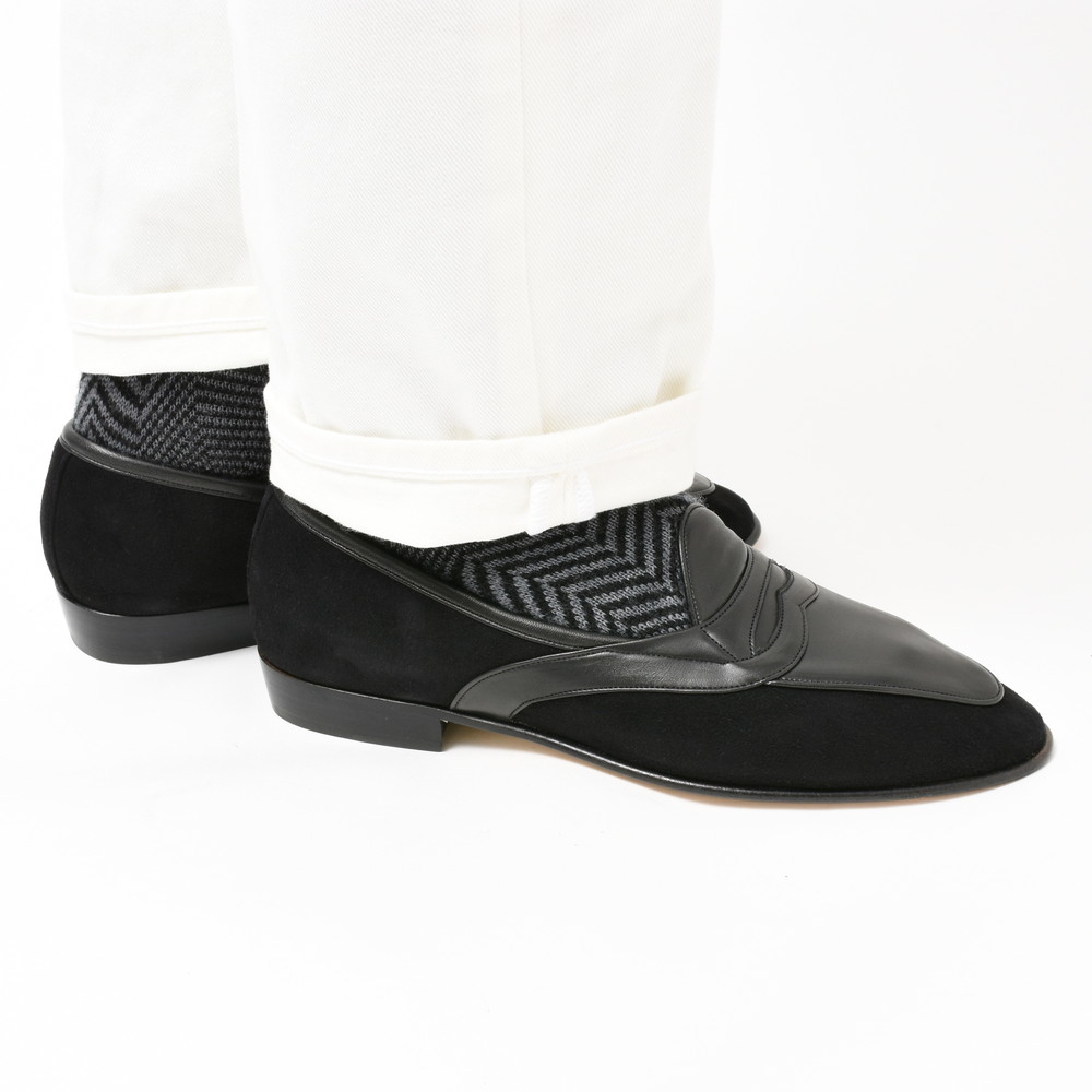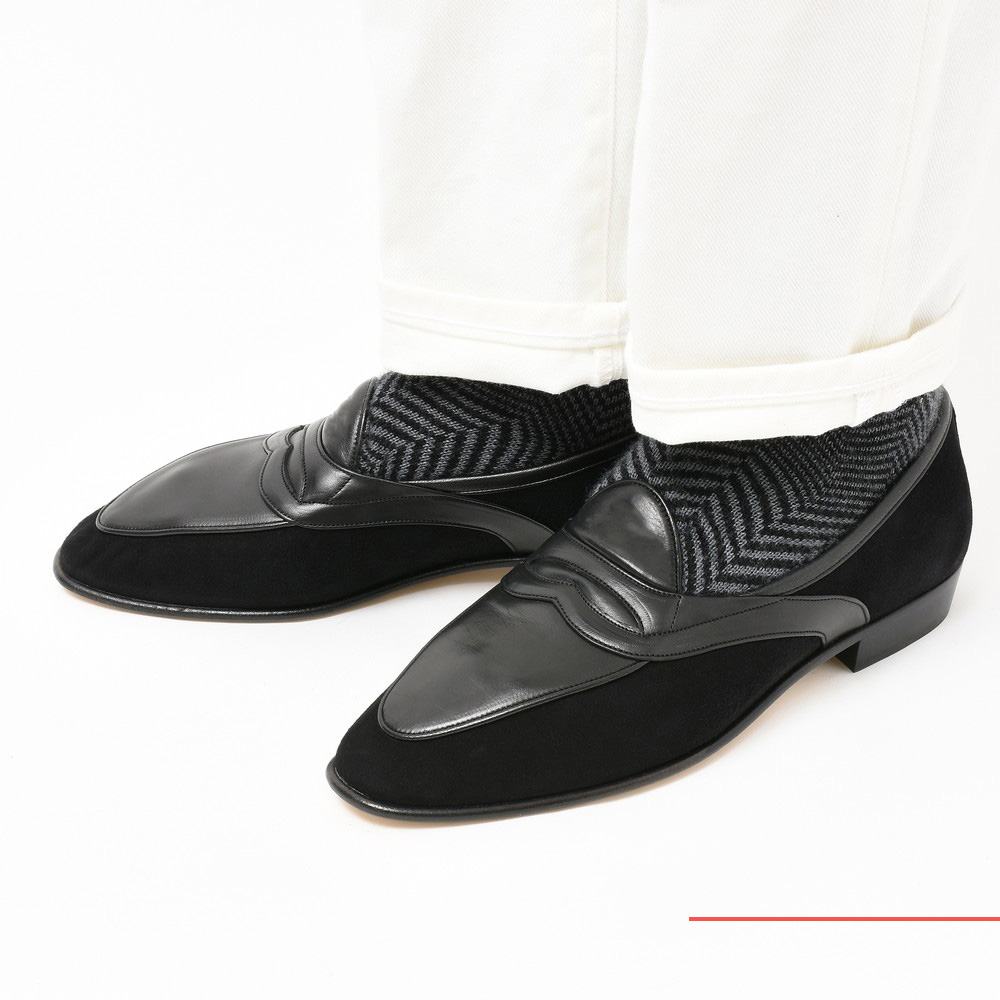 素材のコンビネーションが良いアクセントになっており、とても洒落た感じのモダンローファーに仕上がっています。