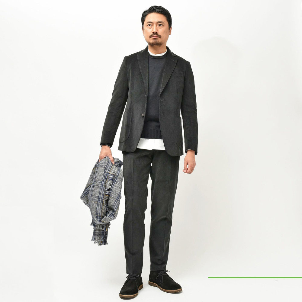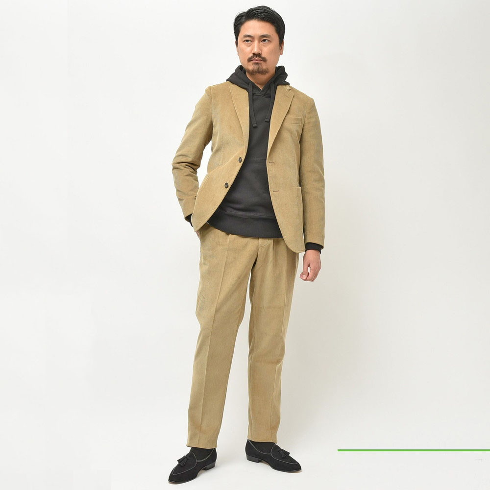 カントリー感控えめの細畝コーデュロイ素材を採用しているのもポイントでして、ほどよく温かみがありながらも現代的に洗練されたムードを演出することが可能という存在、このバランスの良さはベースとなるジャケットの完成度の高さあってのことだと思いますし、何よりもセンスの高さがすばらしいんですよね。
