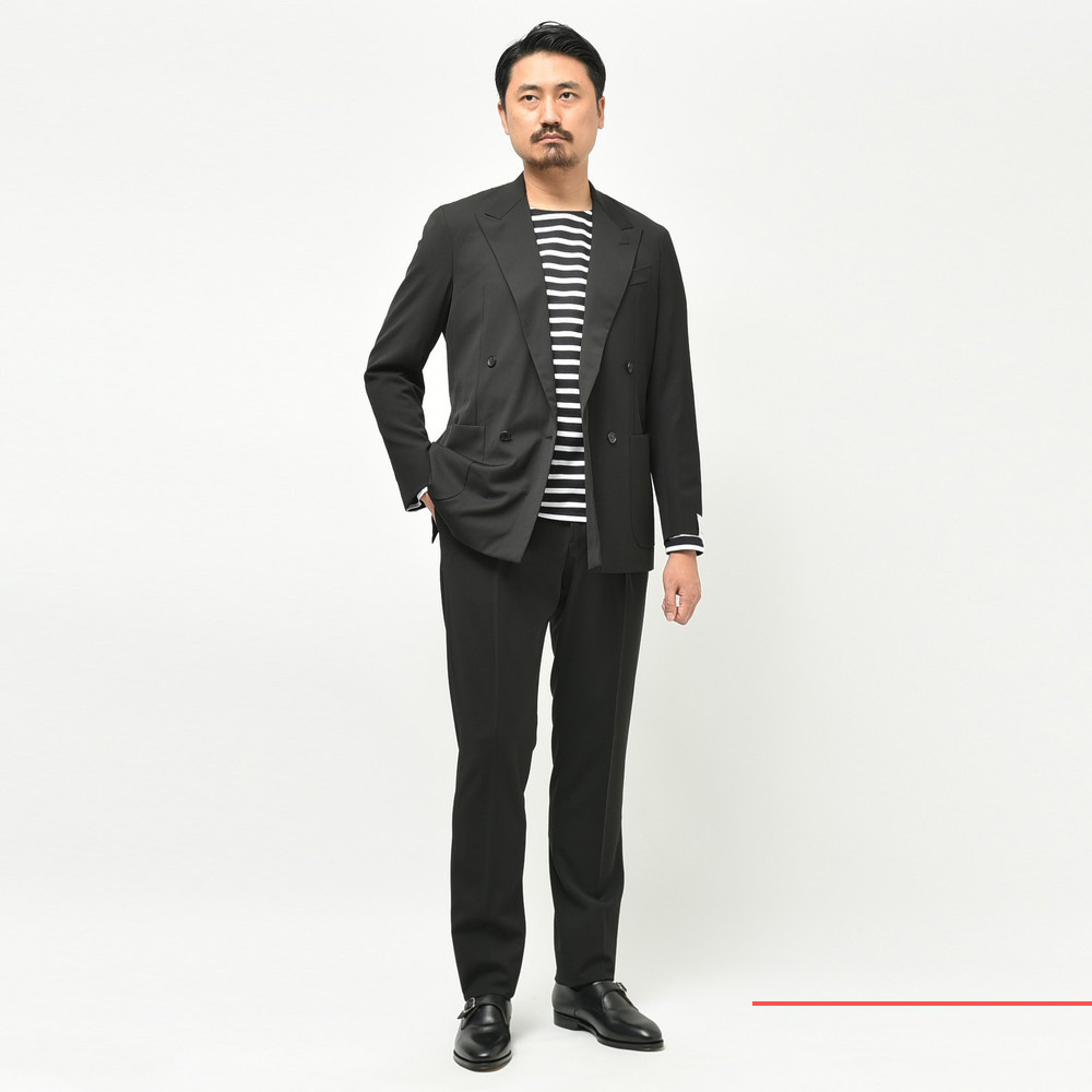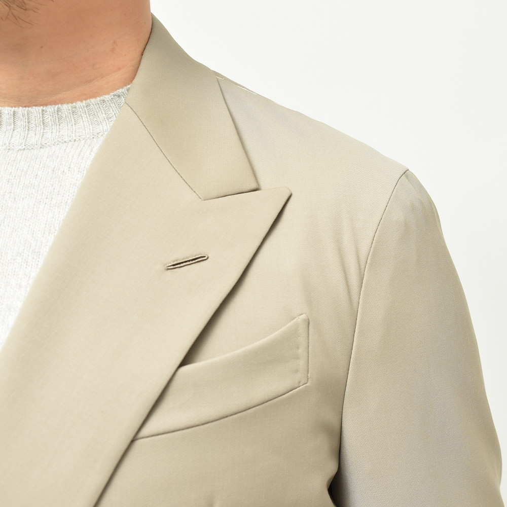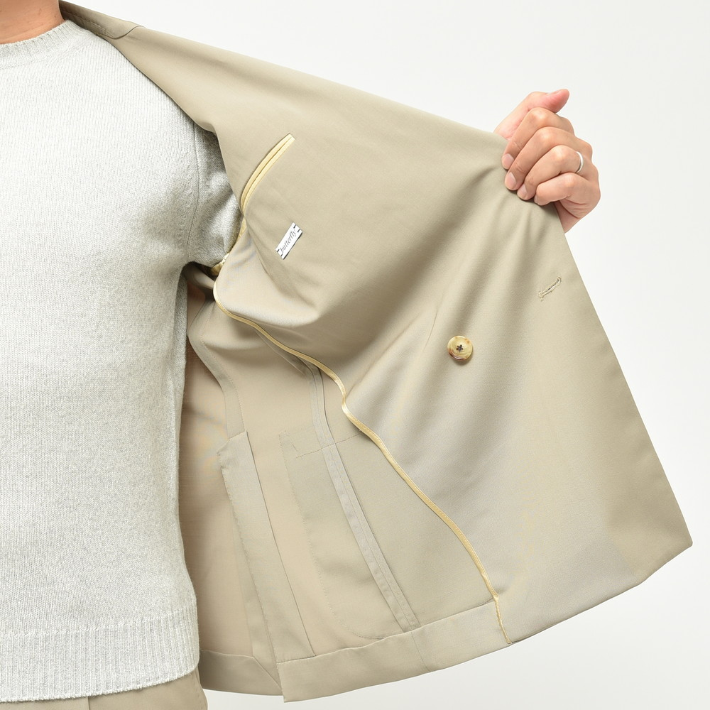 CARUSO(カルーゾ)のファーストセラーモデルBUTTERFLYバタフライダブルジャケットの、最もベーシックなスタイルであるストレッチギャバジンのソリッド生地を用いたモデルです。