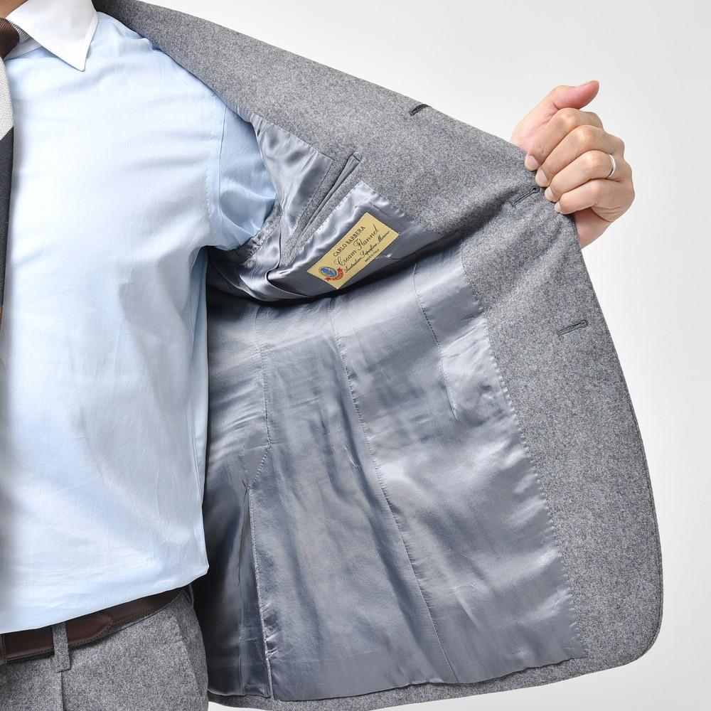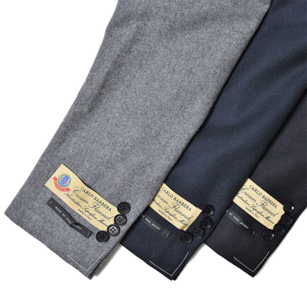 RING JACKET(リングヂャケット)×gujiのコラボレートスーツでは特選生地としてご用意し続けてきたCARLO BARBERAカルロ バルベラ、もしかすると今回が最後になるかもしれないスペシャルフランネルを用いたモデルがこちらです。