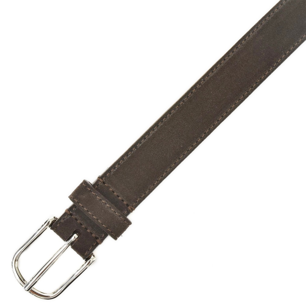 こちらはプレーンなバックルで、ややナローな2.5cm幅のスエードベルト。ドレススタイルをシャープに見せてくれると共に、芯材を用いない柔らかな仕上げなのでカジュアル使いも可能な汎用性を備えているベストセラーモデルです。