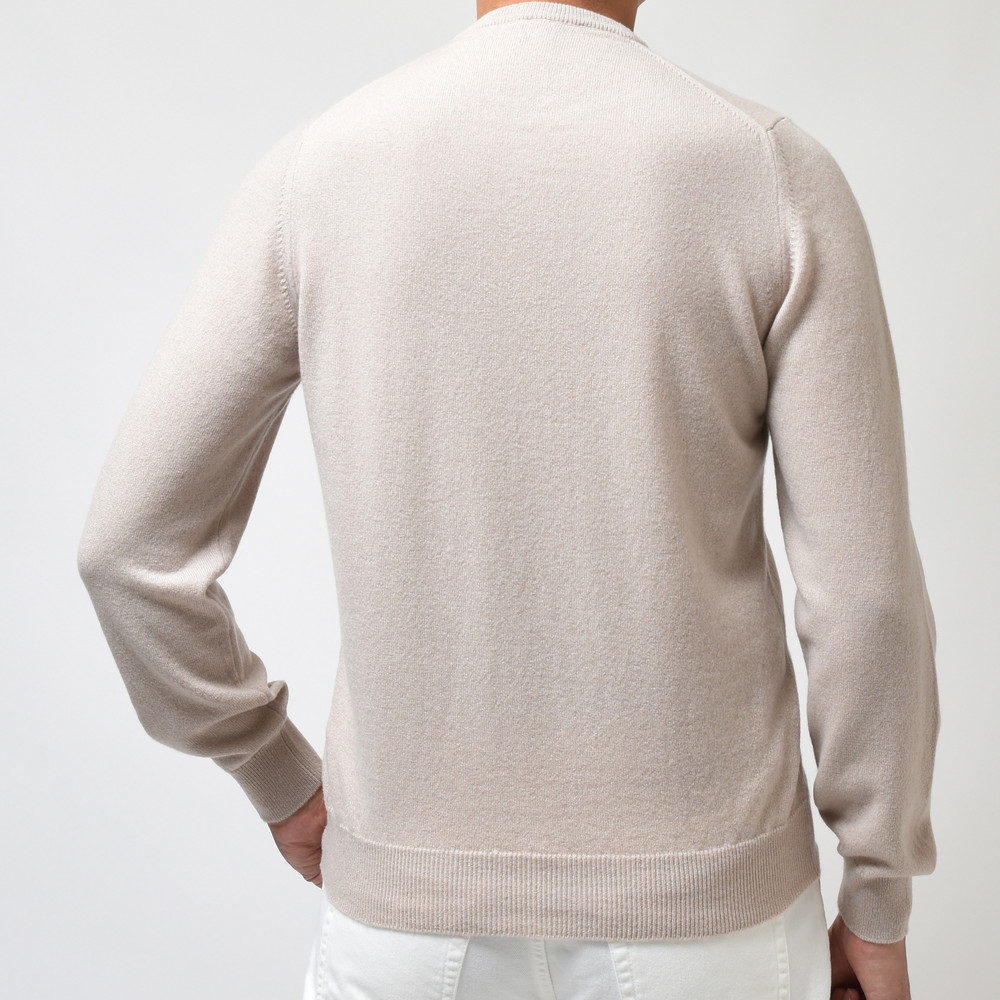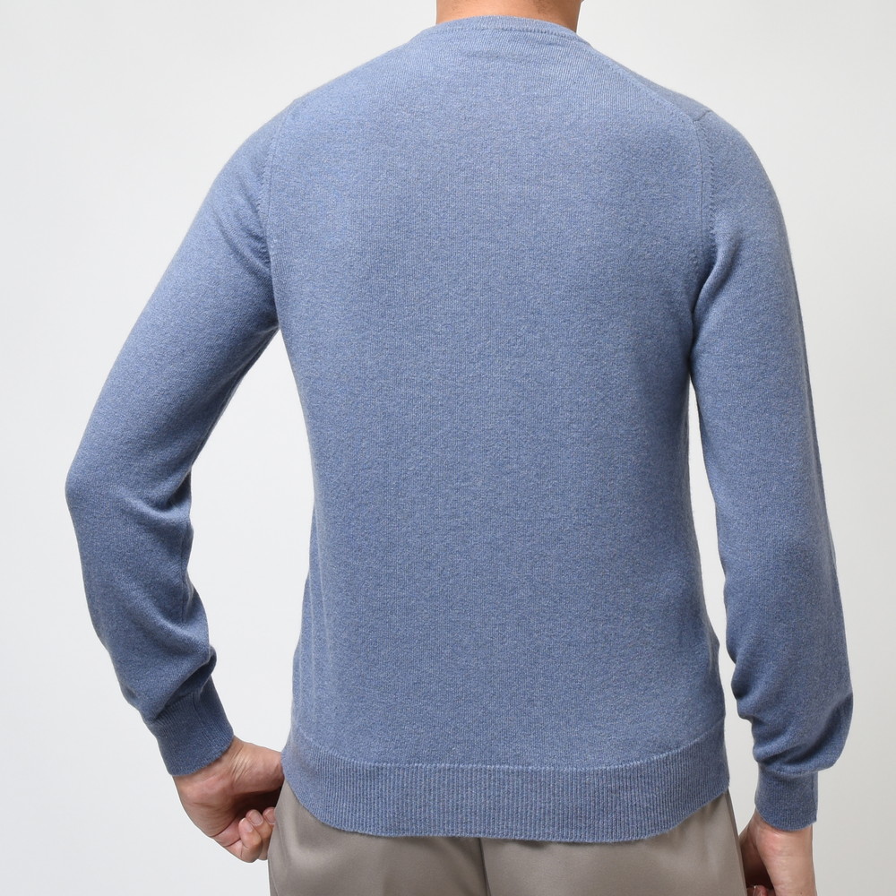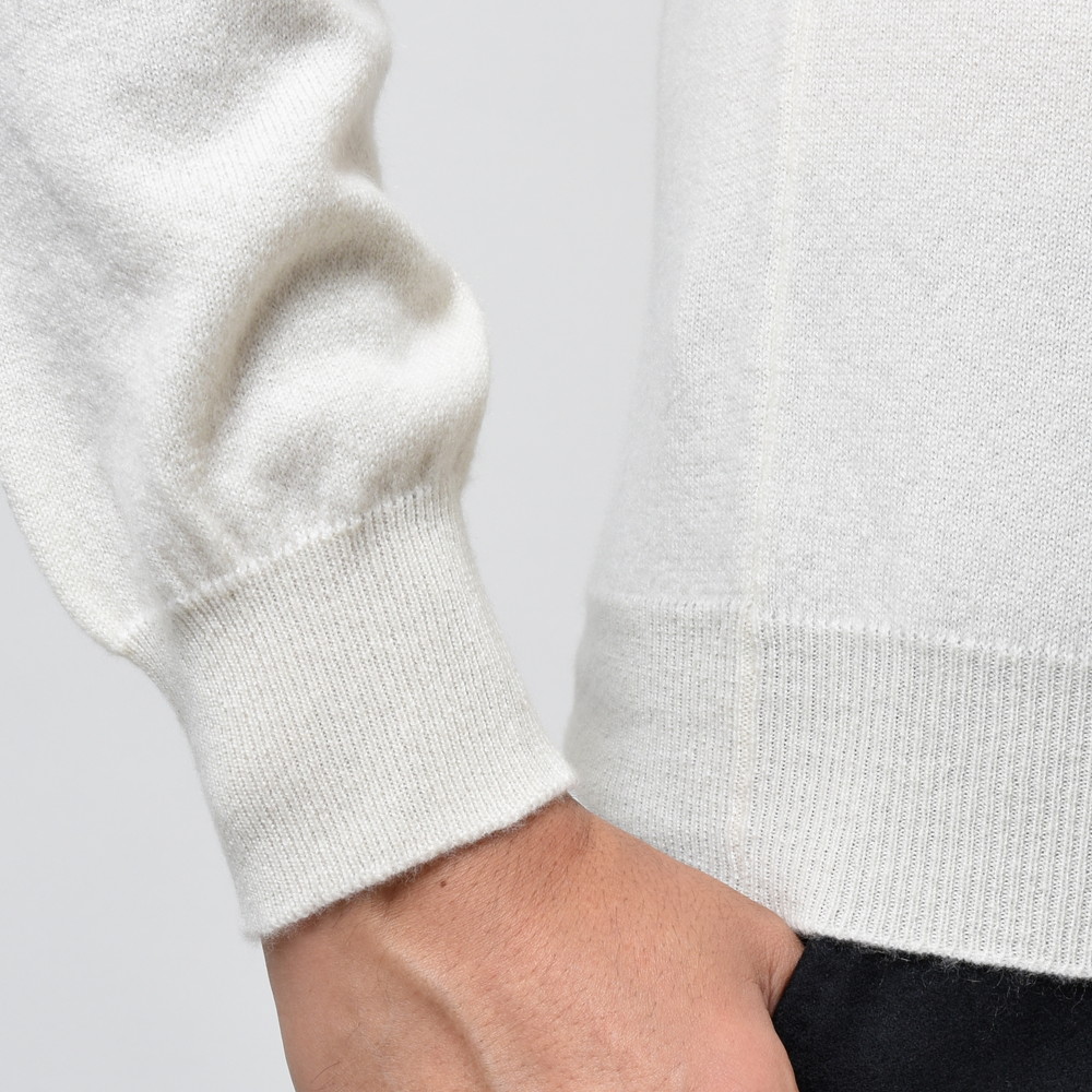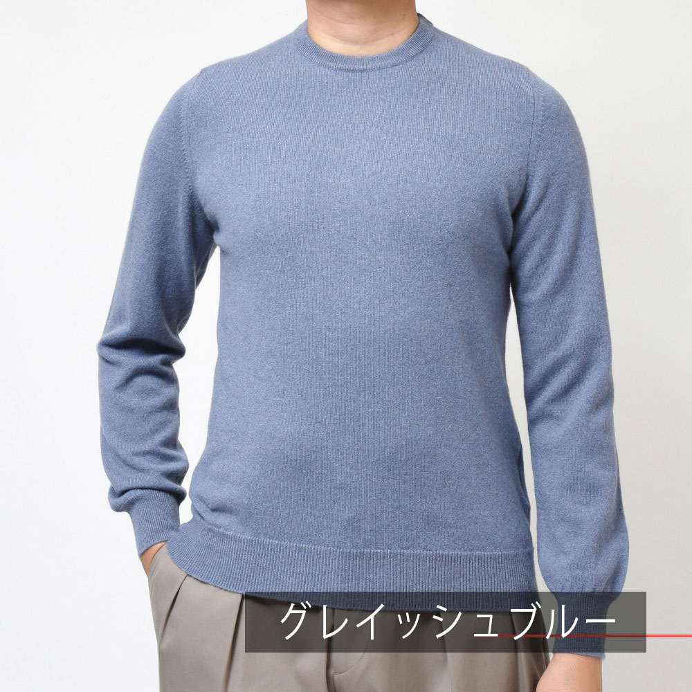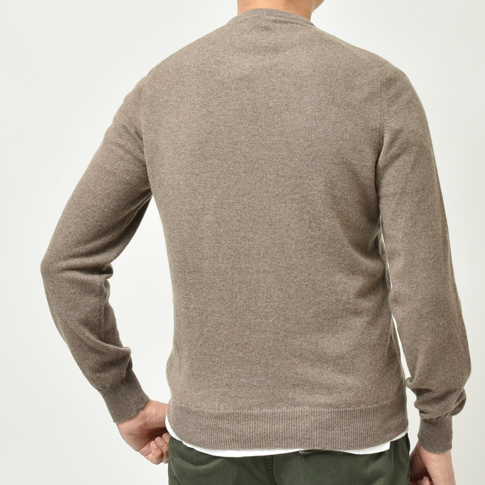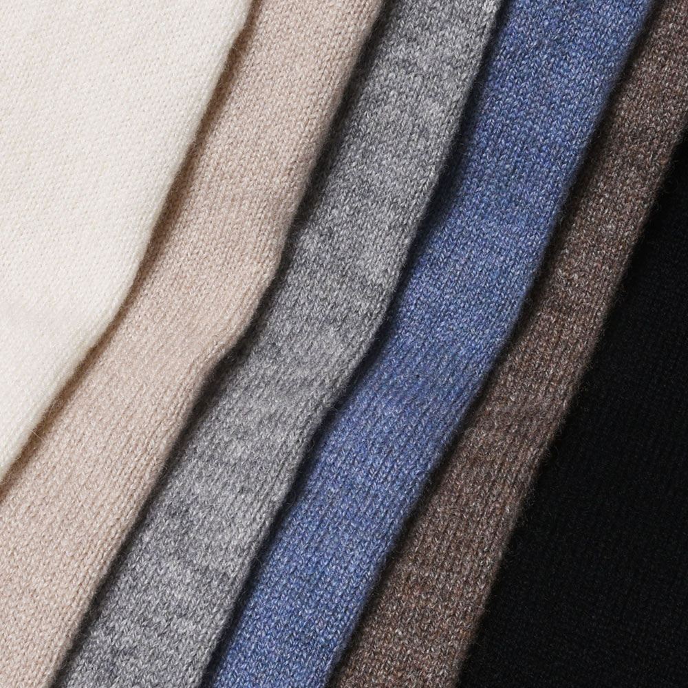 こちらはFEDELIのスタンダードクオリティのカシミアニット。ほのかに起毛感がありつつも繊細さが簡単に見て取れる上質な糸を用い、スマートなシルエットに編み上げられているクルーネックタイプです。
