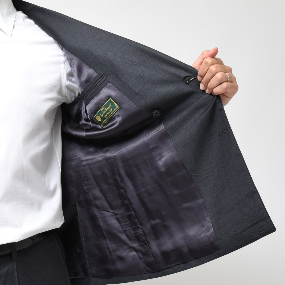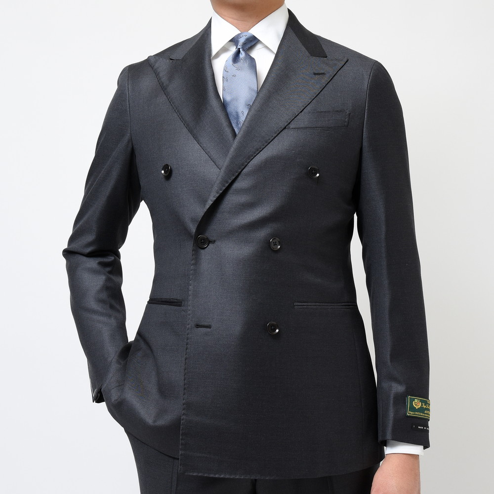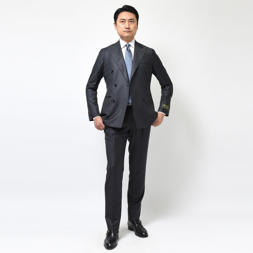 SUPER150'sウールソリッド6B1プリーツダブルスーツ (MADE BY RING JACKET / LoroPianaファブリック使用)【オールシーズン】