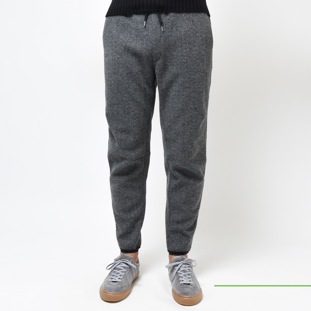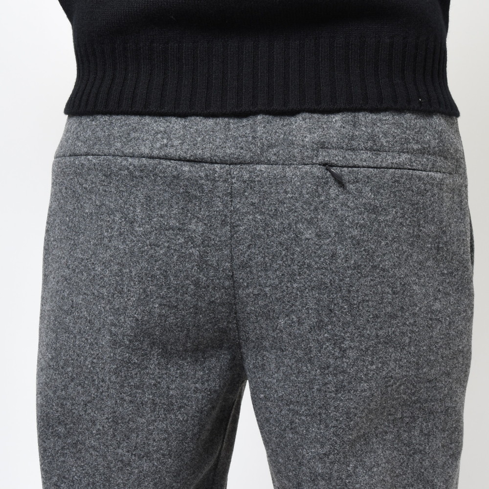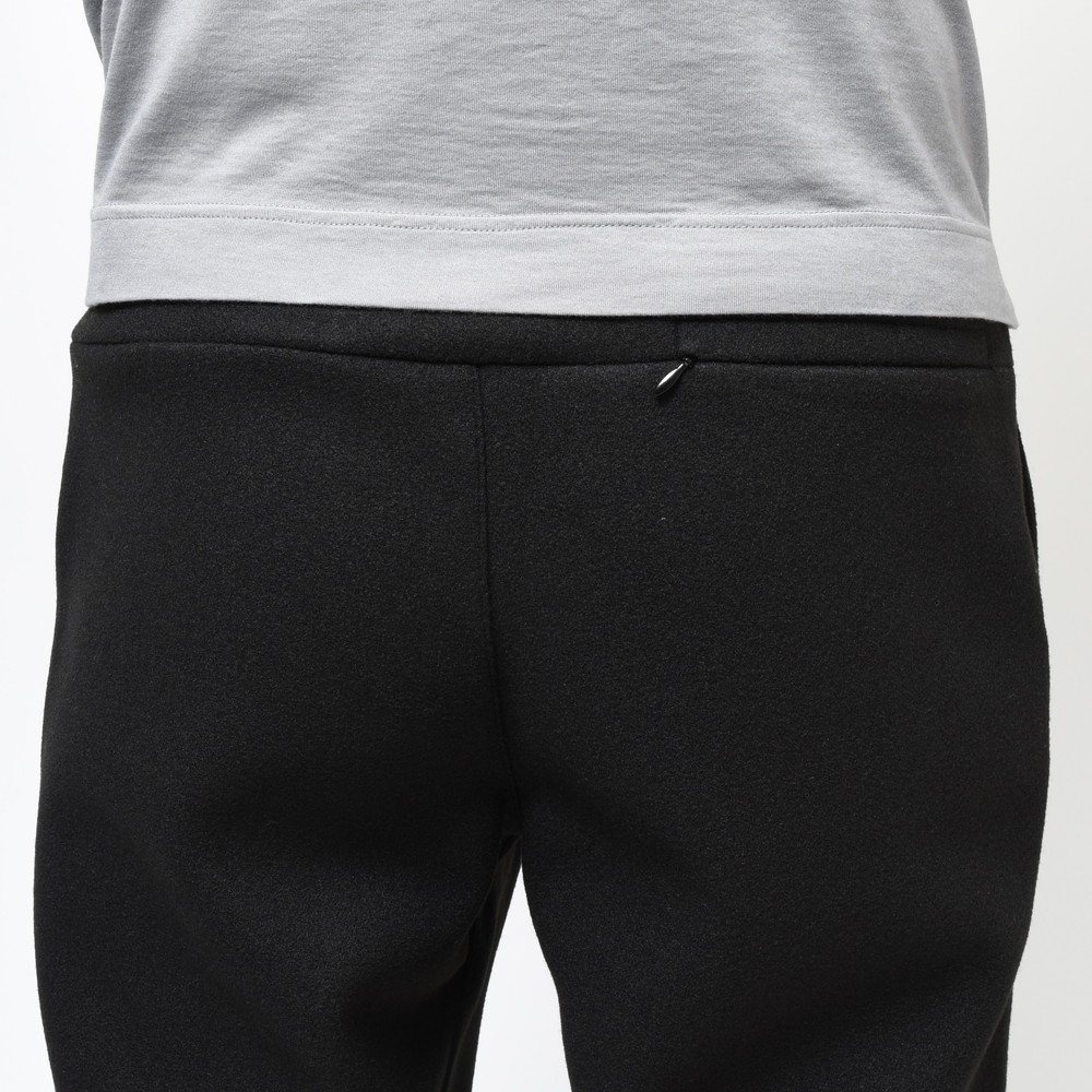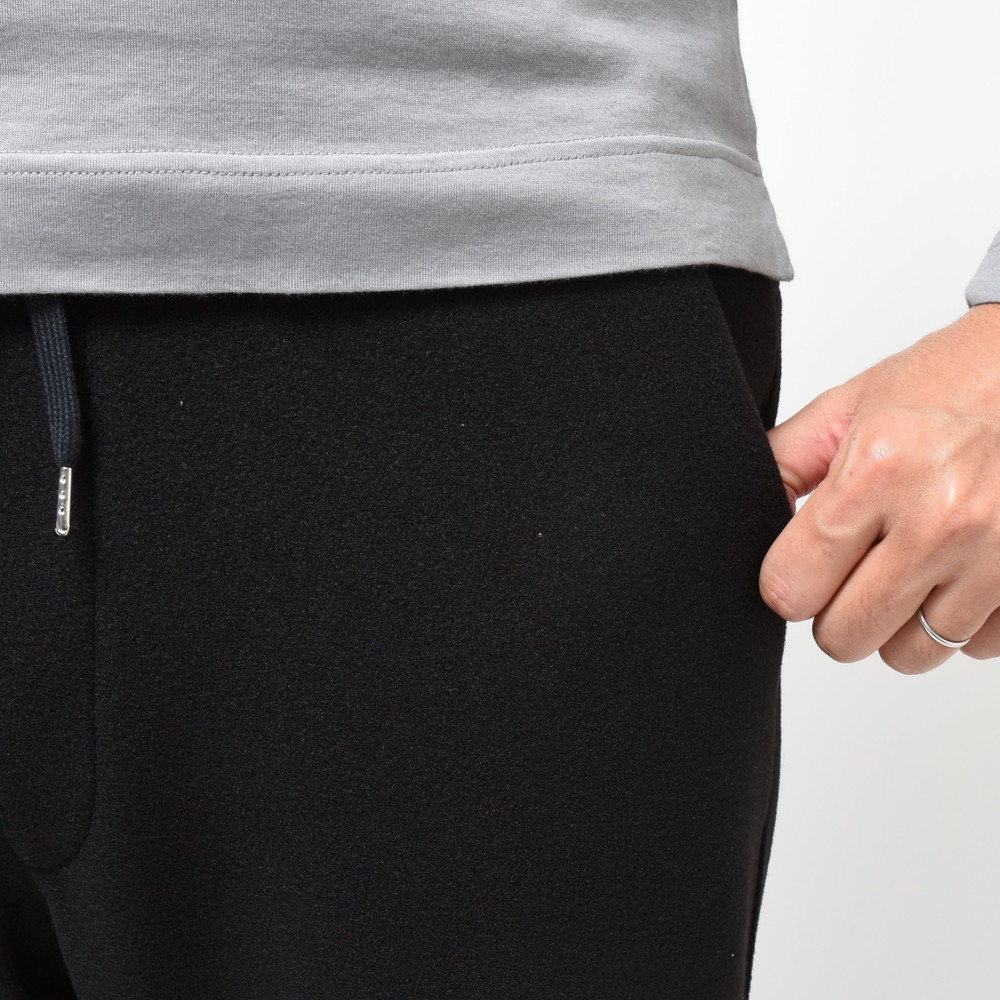 素材は毛足の短いフリースを採用しているので、ウォーム感はあるんですがそれが前に出すぎないタイプなので暖かくスマートに穿ける仕上がりに。またスポーツ感を押さえた裾リブのコンパクトな仕様などもこのブランドならではのセンスが発揮されているんですね。