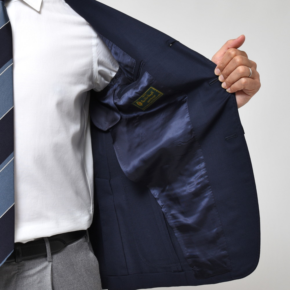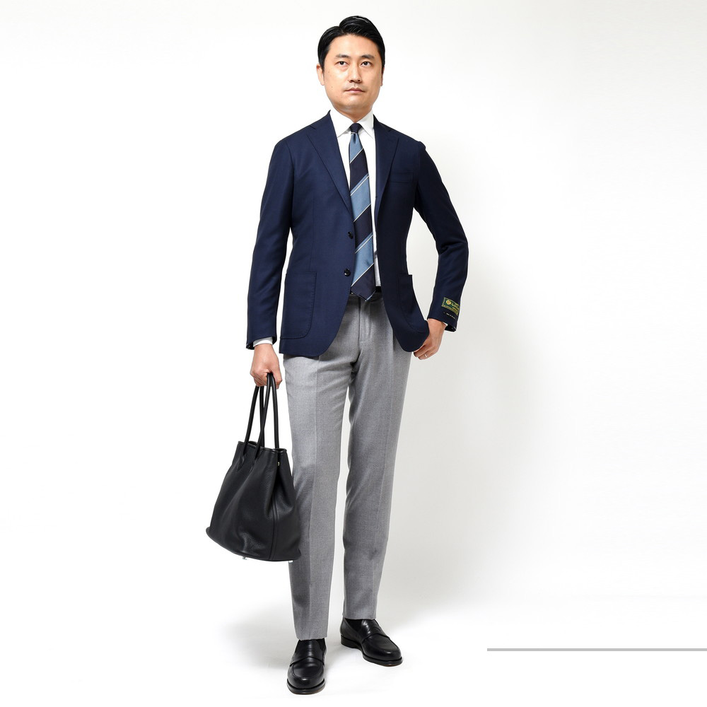 ベーシックなネイビーホップサックはほとんどのブランドでご用意していますが、RING JACKET謹製のこちらは日本のバランス感覚とイタリアの美意識が融合した、スマートな仕上がりだと思います。