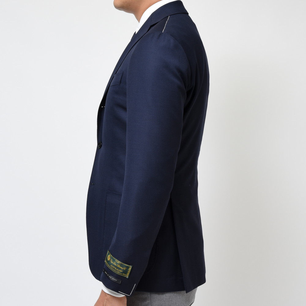 RING JACKET(リングヂャケット)×guji(グジ)のオールシーズン対応、究極のベーシックネイビージャケットという事でご用意しているのがこちらのLoroPianaロロピアーナ社謹製SUPER150'sウールホップサックです。