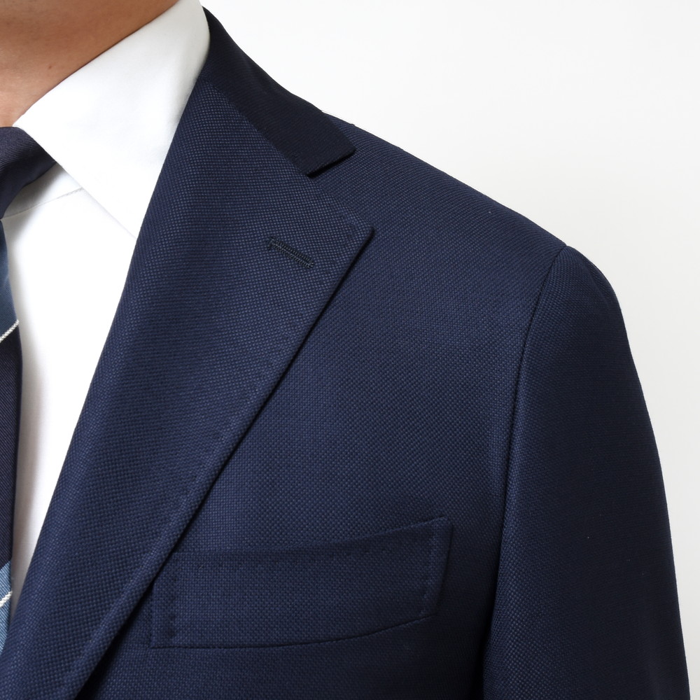 LoroPianaの生地はベーシックなホップサックでも何とも言えない色気があるといいますか、凄く魅力的なんですよね。細番手の糸を用いることで艶に品格があり、しなやかさも申し分無し。