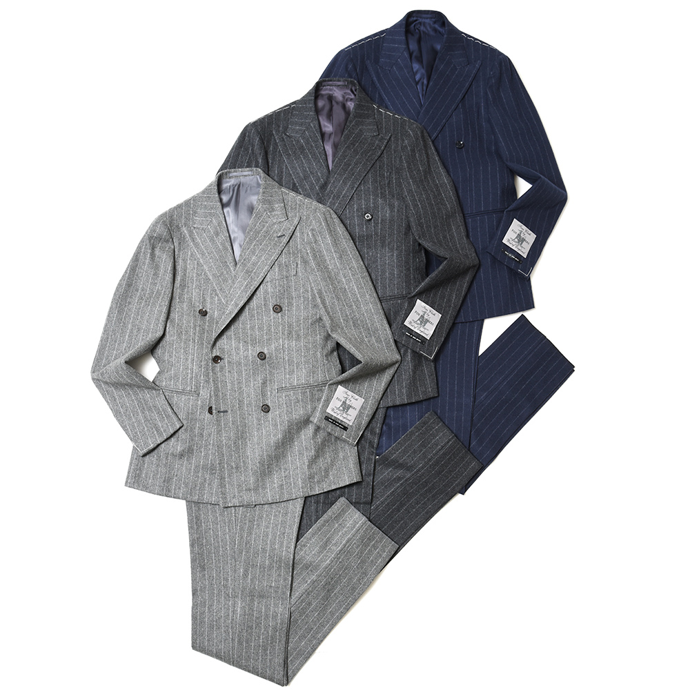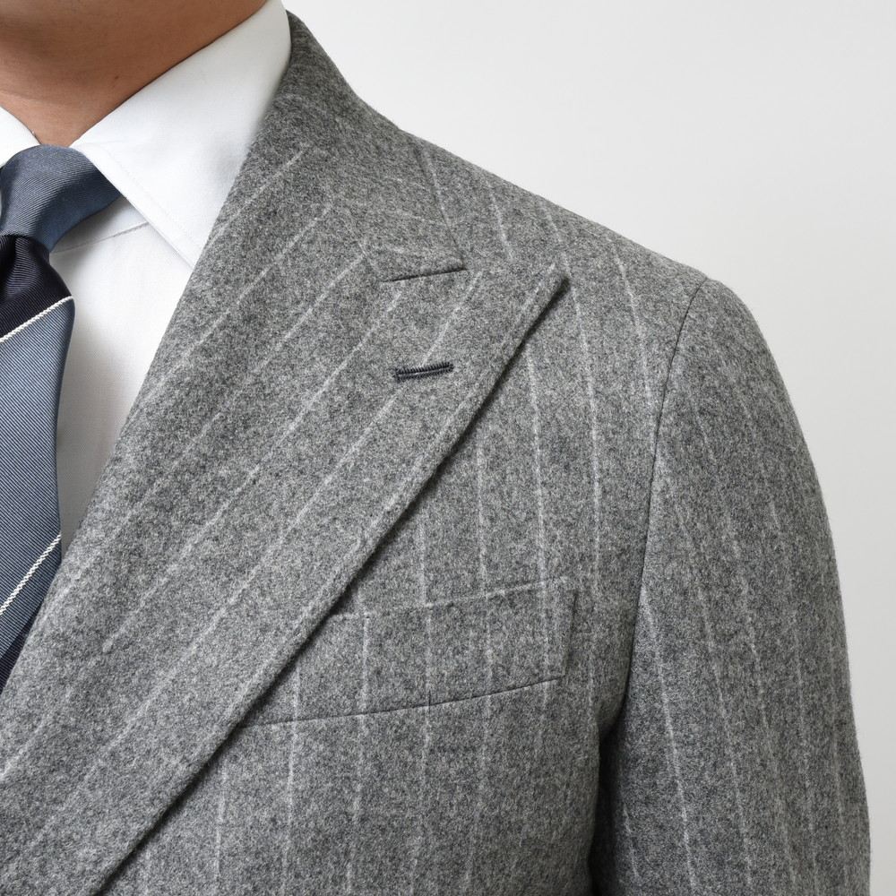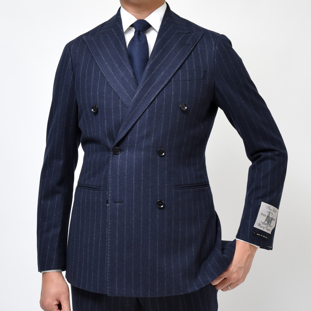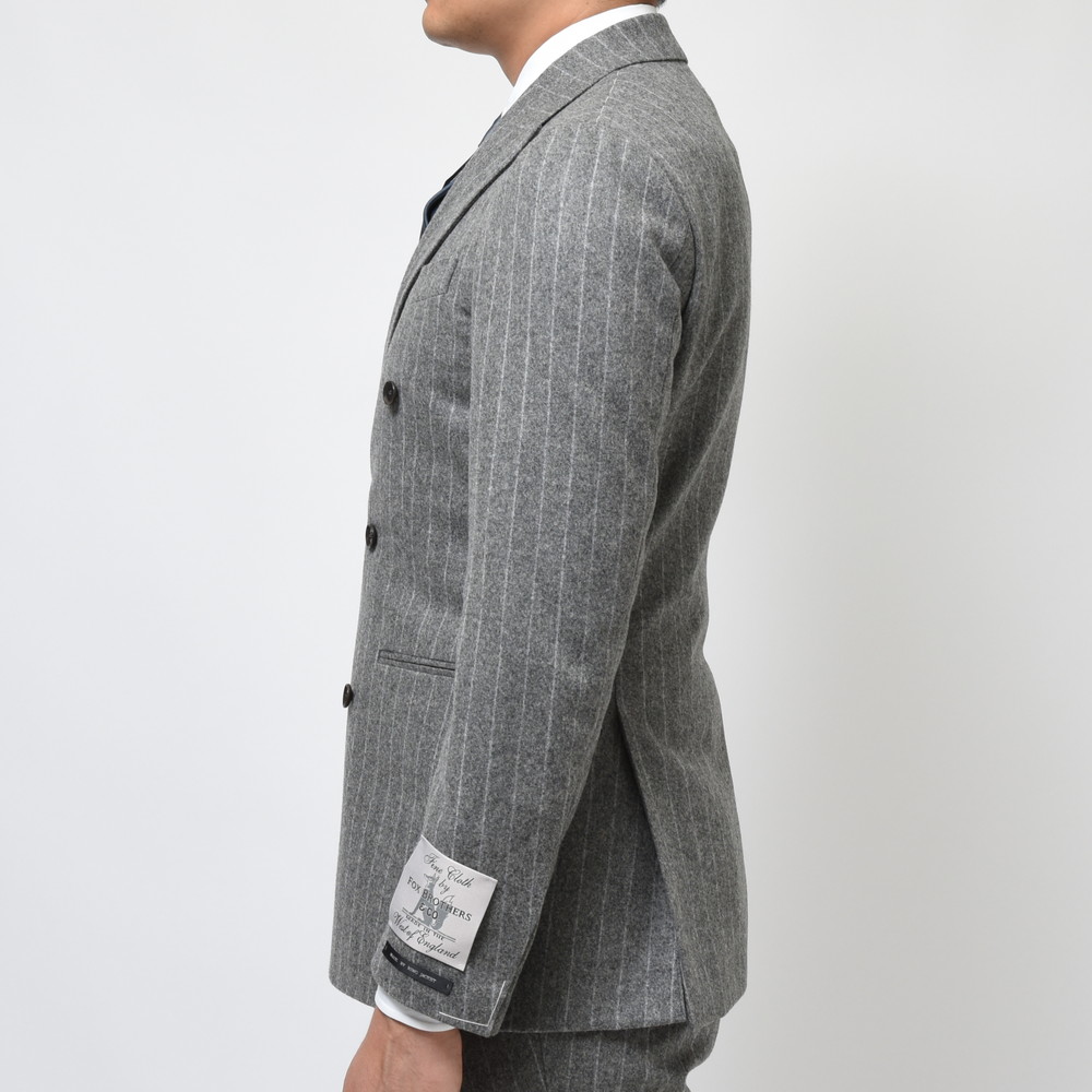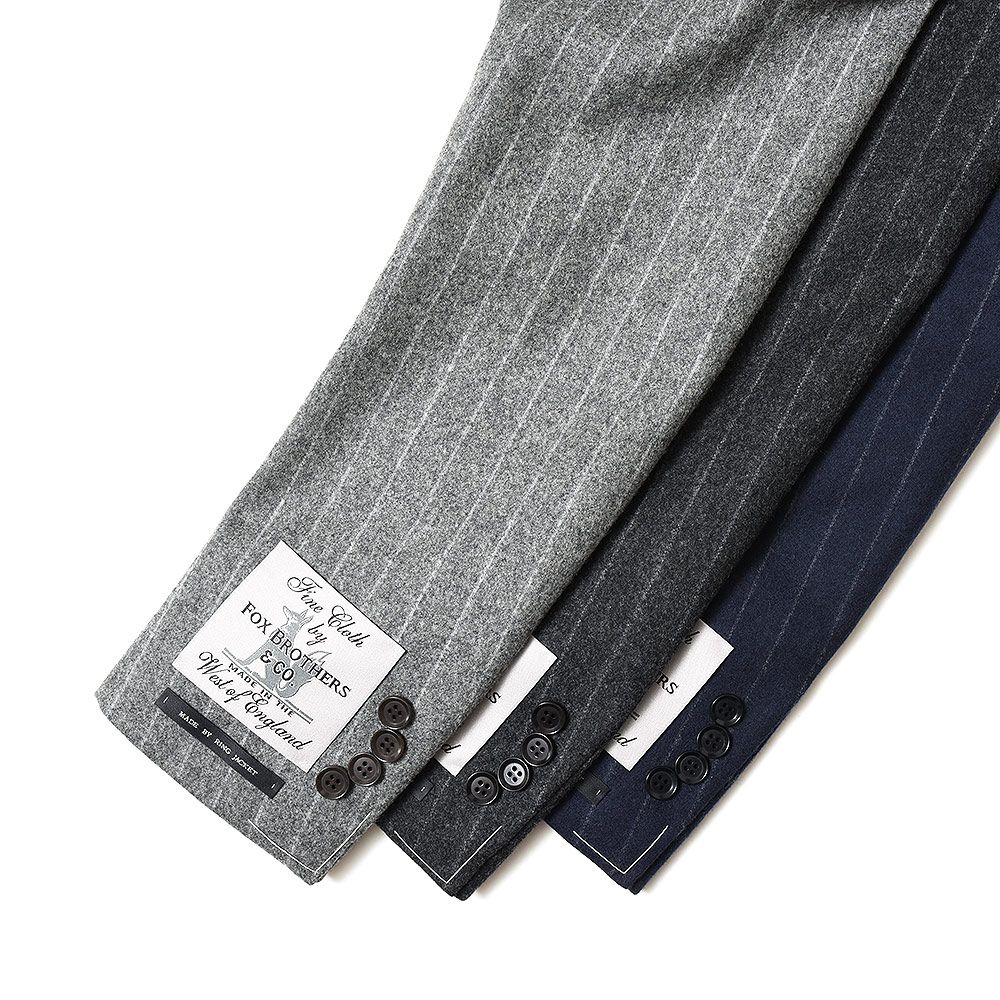 生地はもう何度も採用しているお馴染み英国の雄“FOX Brothersフォックスブラザーズ”のチョークストライプフランネル。これを越える英国フランネルは現在では存在しないのでは・・・というくらいにほれ込んでいるファブリックです。