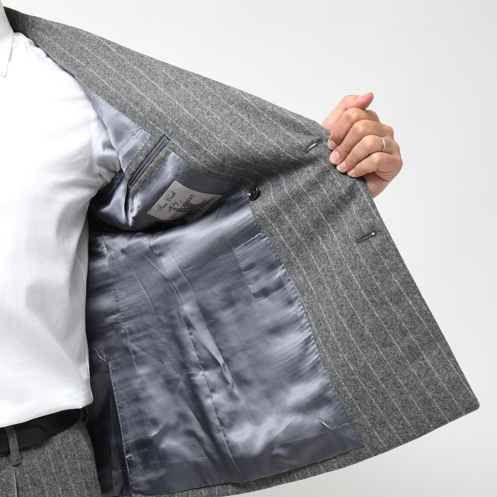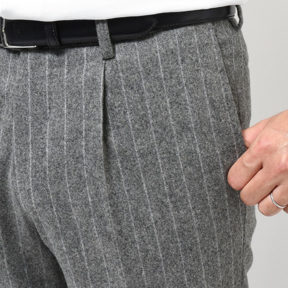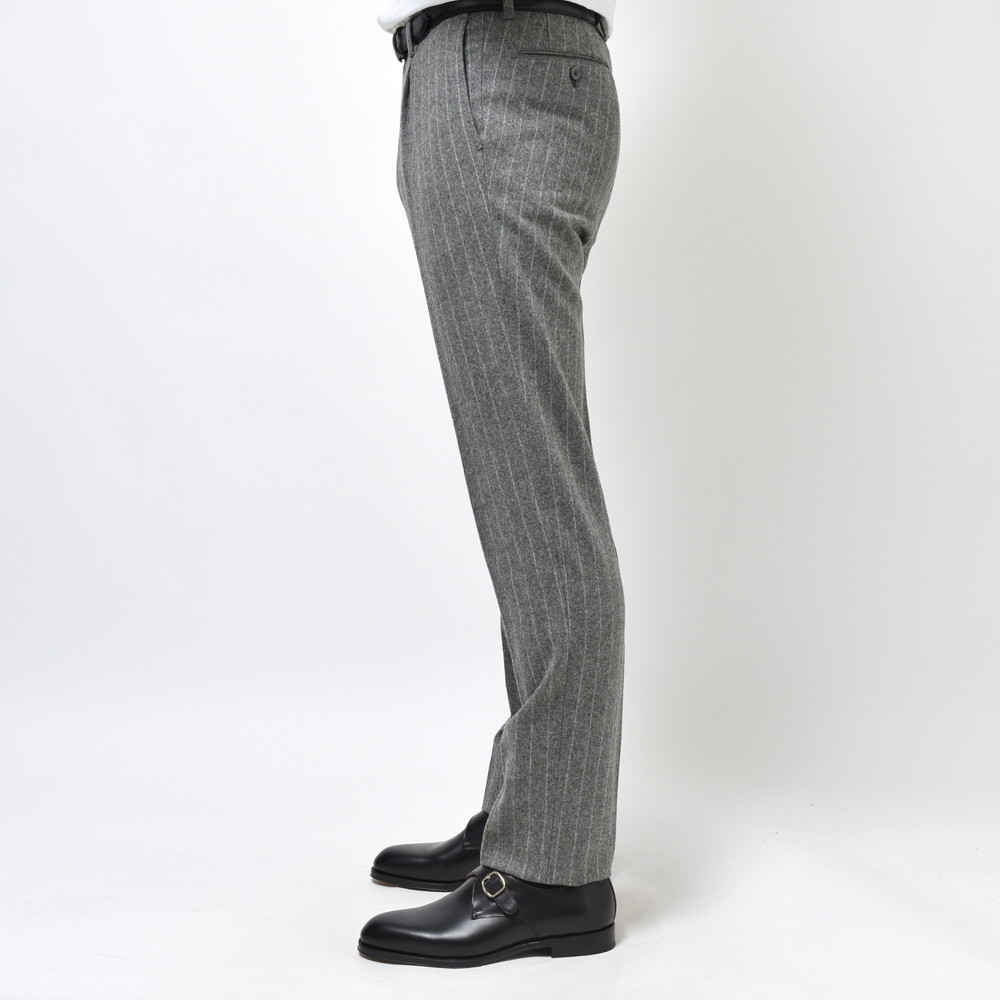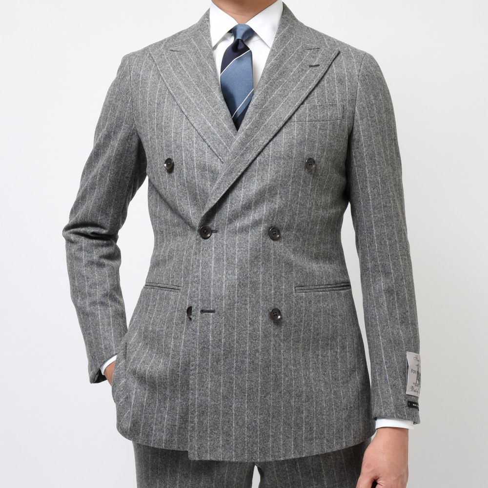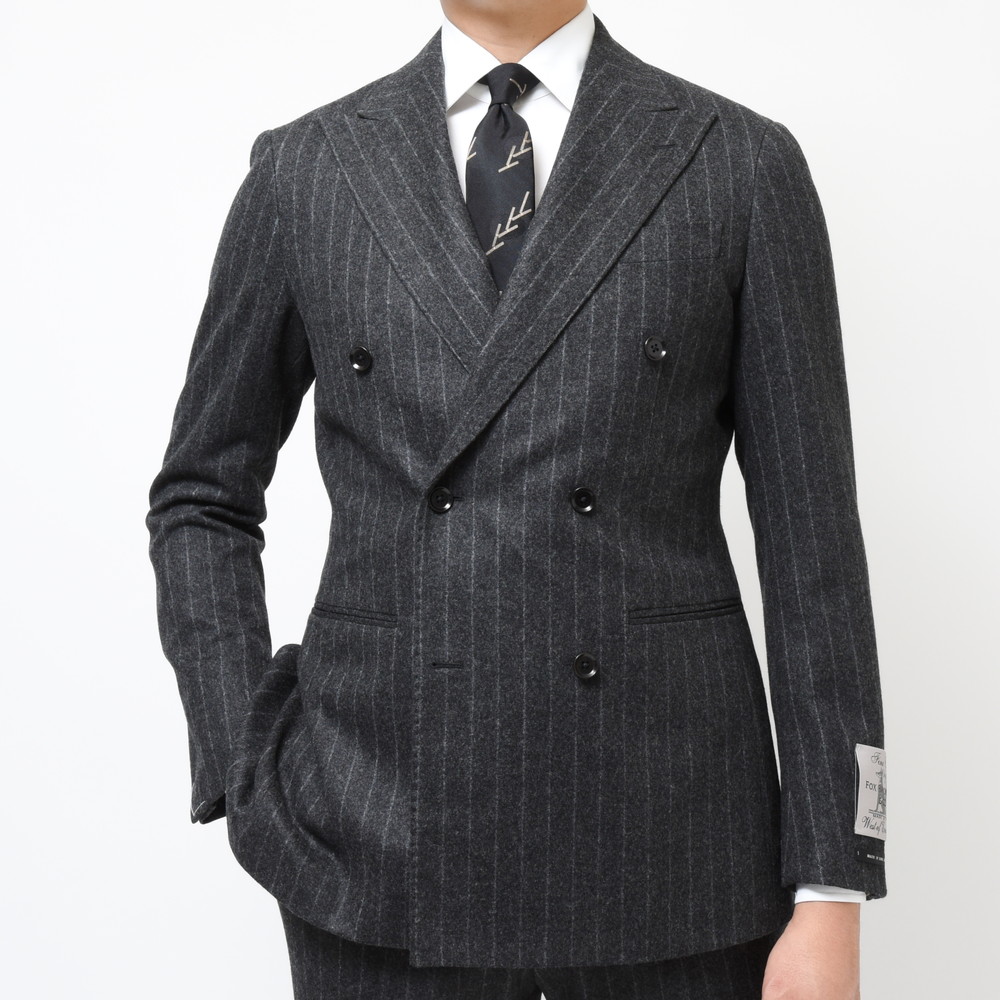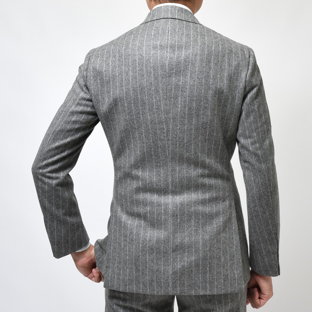 生地はもう何度も採用しているお馴染み英国の雄“FOX Brothersフォックスブラザーズ”のチョークストライプフランネル。これを越える英国フランネルは現在では存在しないのでは・・・というくらいにほれ込んでいるファブリックです。