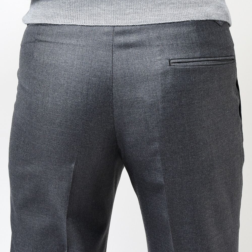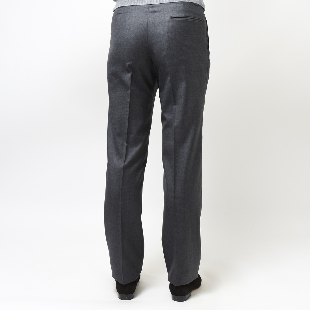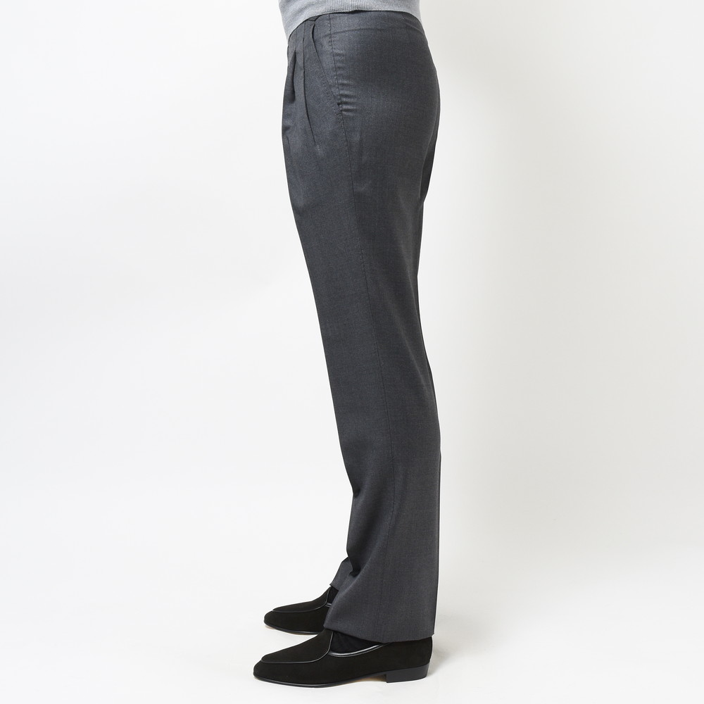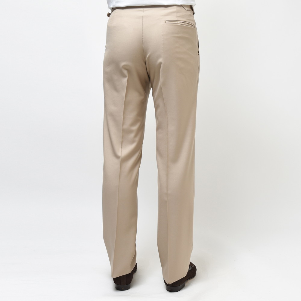 ドレスパンツとして最もベーシックな生地の一つであるVITALE BARBERIS CANONICO社の上質なウールサージ生地を用いており、サルトリアルなテクニックを駆使することで非常にエレガントな仕上がりになっています。