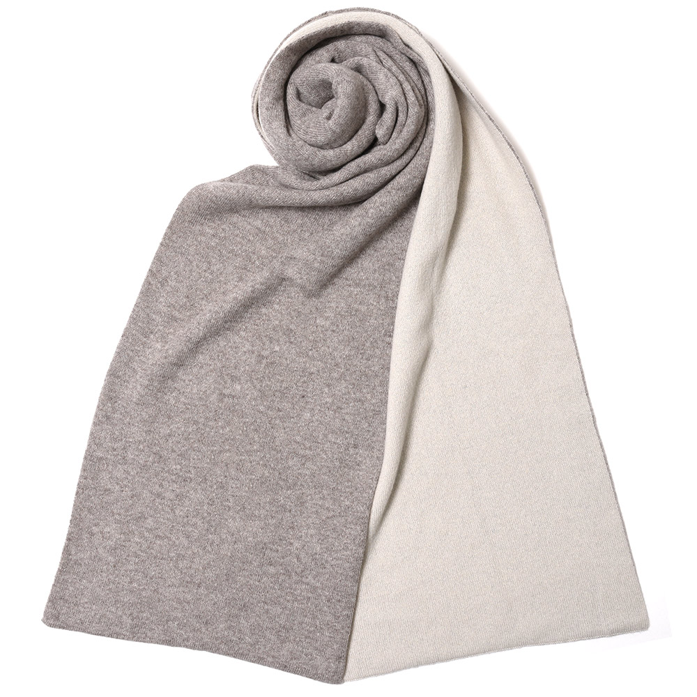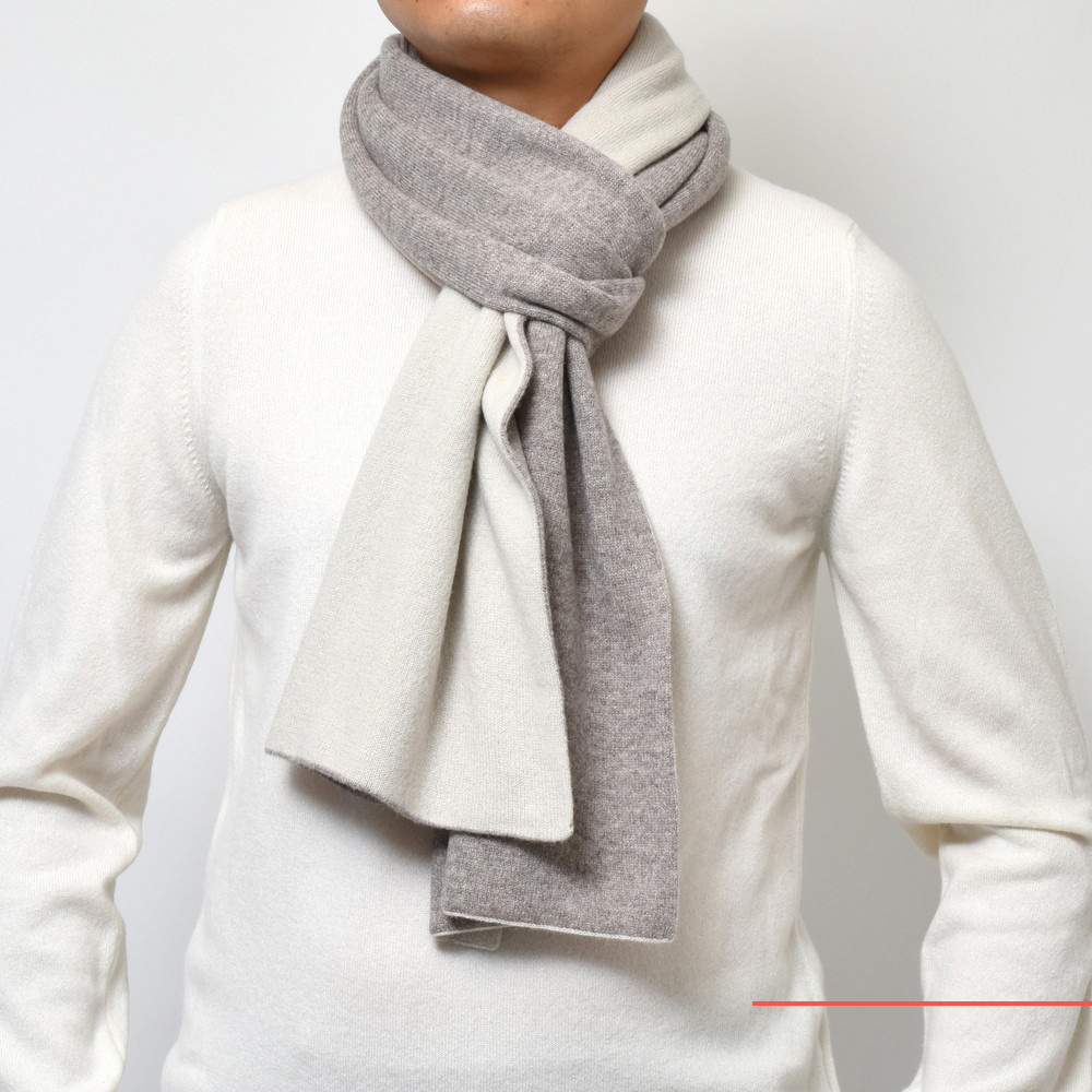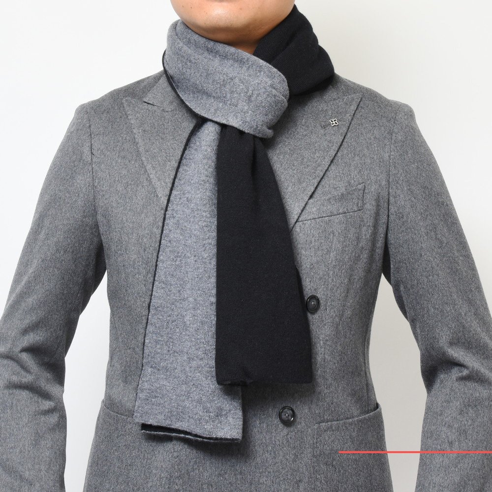 押し出し感がないダブルフェイスのマフラー、結構珍しいタイプですね。親和性の高い色の組み合わせになっているので取り入れやすいのもポイント。