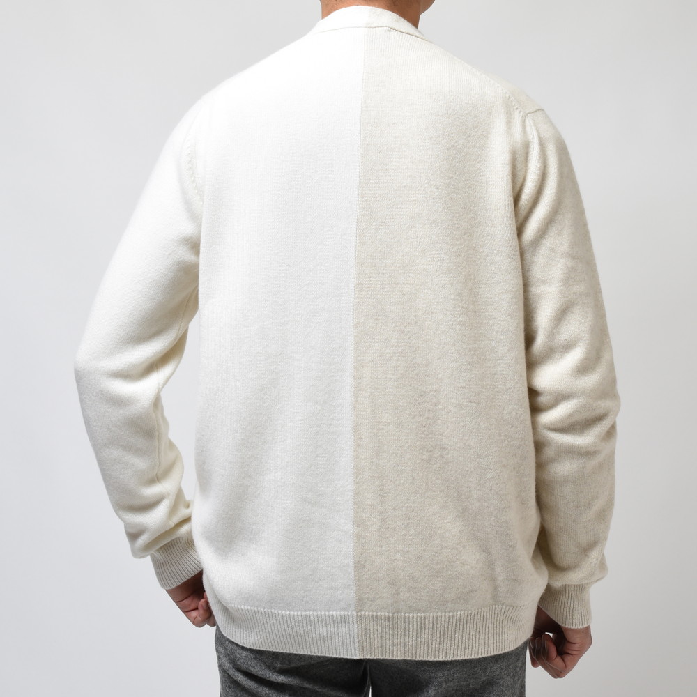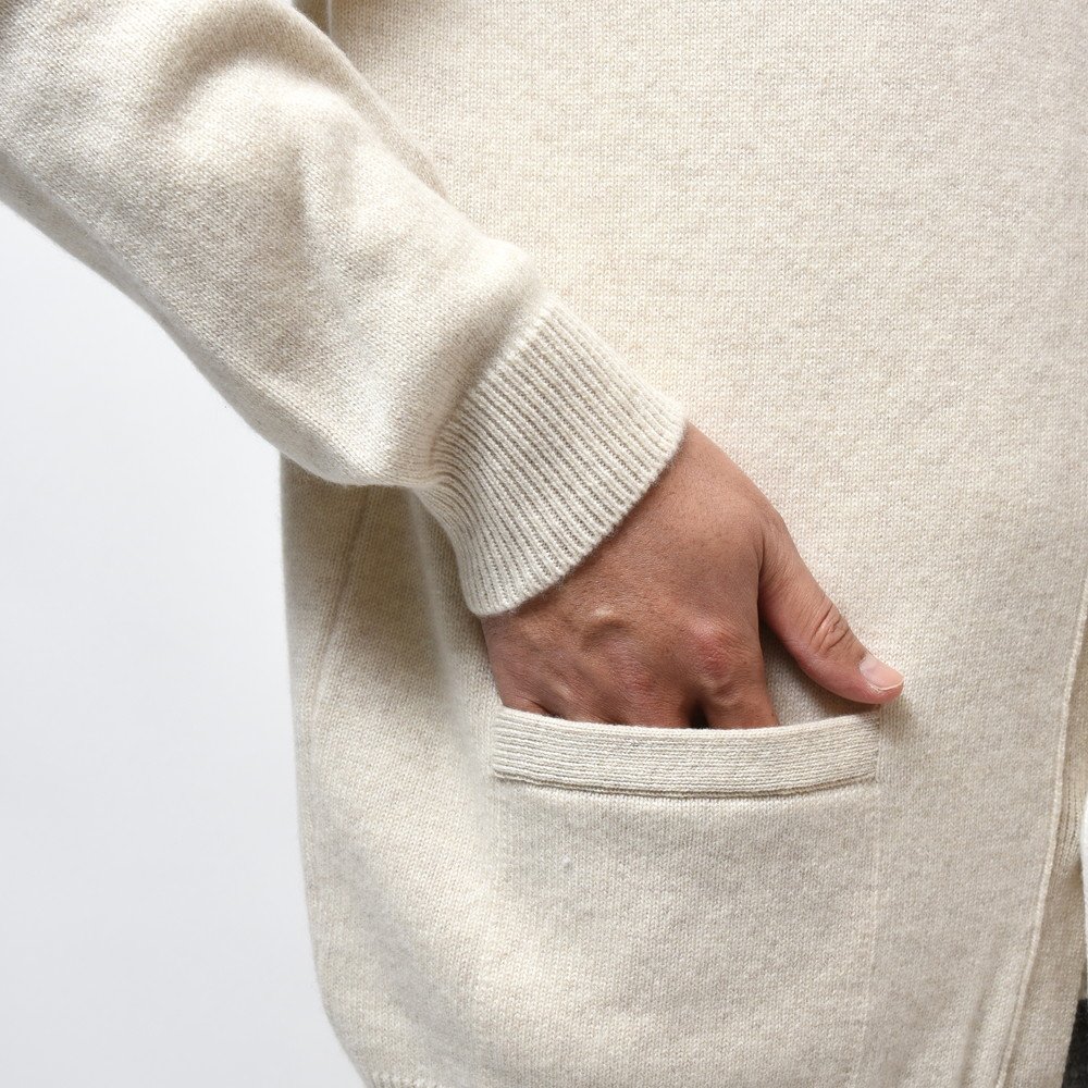 BEGG X CO(ベグ アンド コー)のカシミアウェアコレクションはまだメインの展開はウィメンズという事で、こちらはウィメンズモデルをベースにメンズサイズに、リクエストで前の合わせをメンズ仕様に変更しています。
