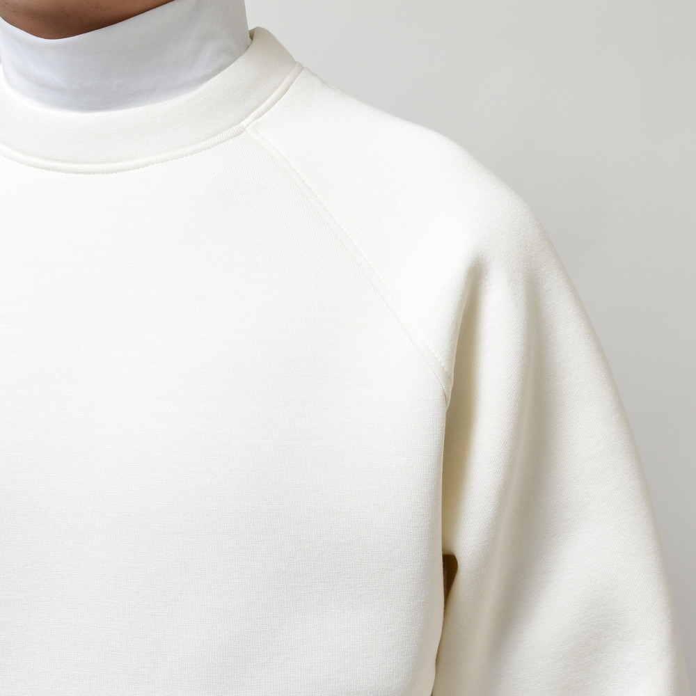 ラグランスリーブ、且つ肩周りにゆとりを持たせたボリュームのあるシルエットにすることで可動域を制限することなく、ストレスフリーに活動することが可能。こういった特性から、gujiではゴルフウェア・タウンウェアを兼用する提案でご用意しています。