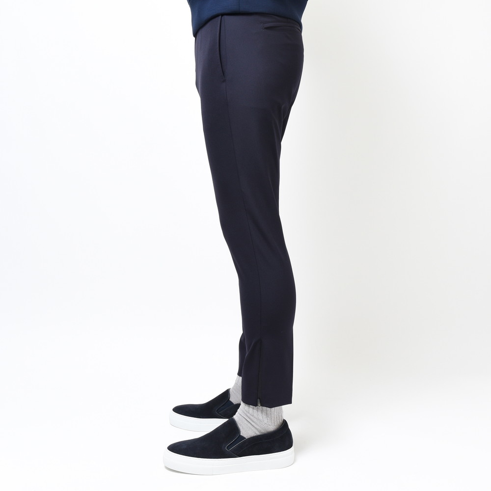 ジップを開くと裾幅が広くなり、ブーツカットのような見え方になりますので足長効果も高いんですよね。特に意図していないとは思いますが、嬉しい副作用かと。