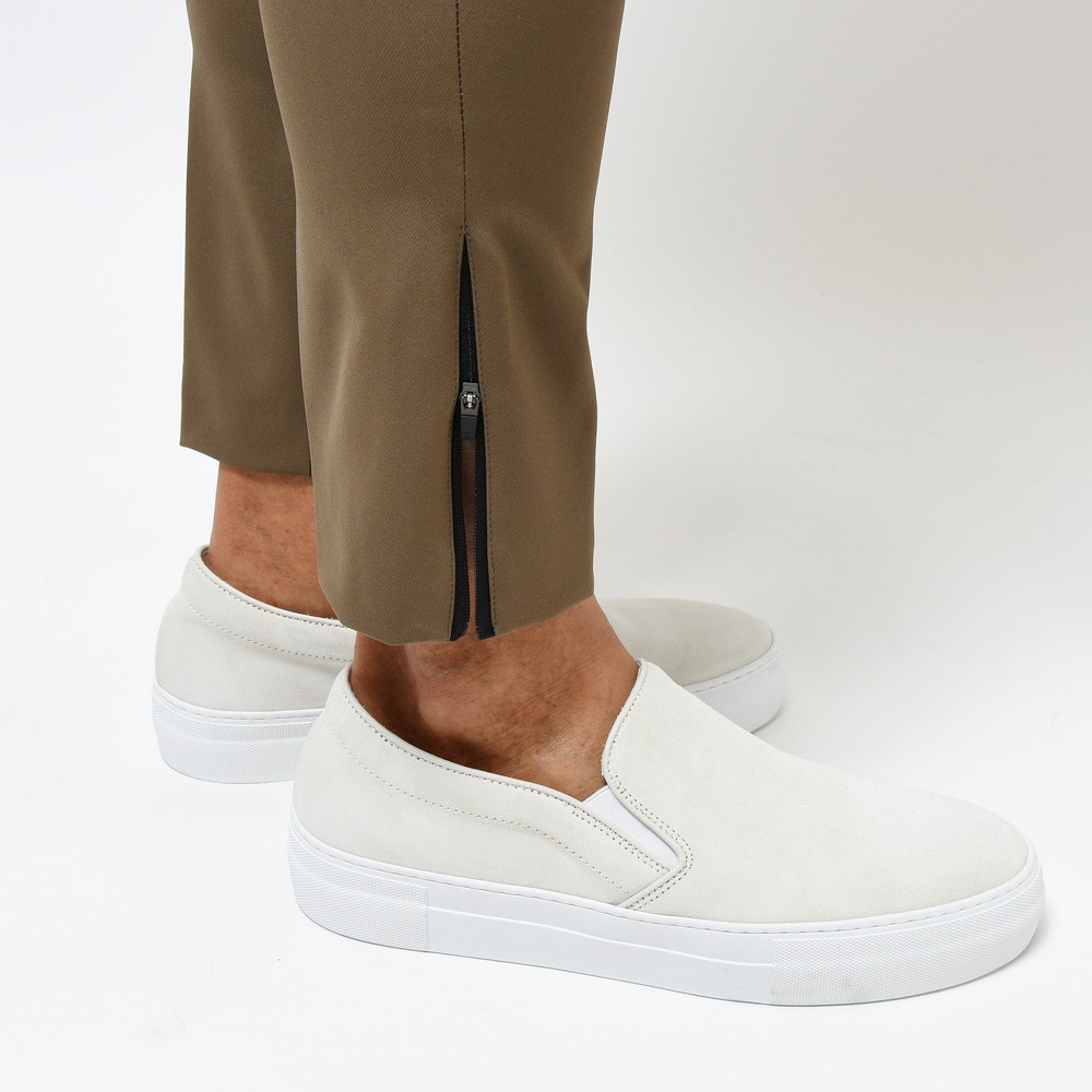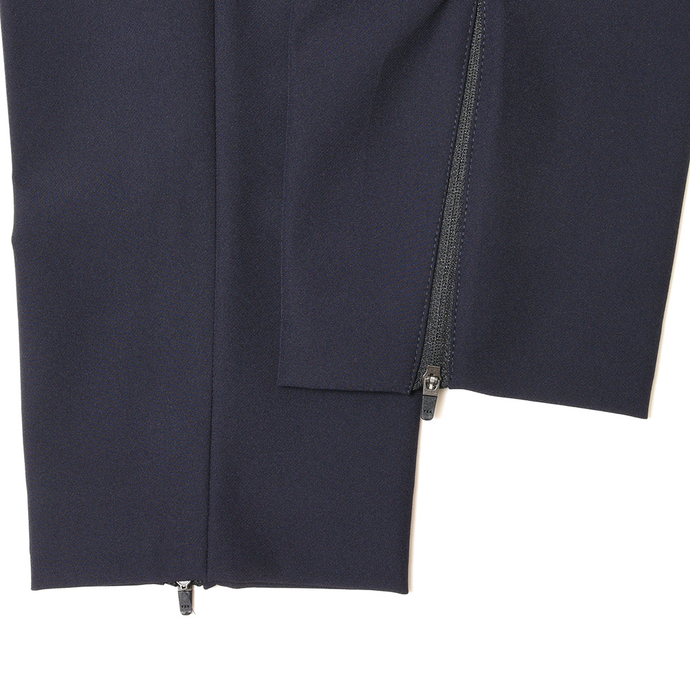 ゴルフスパイクのボリュームに合わせて、裾のジップを開閉して見せ方をコントロールできるので、意外と実用的なディティールかな・・・と思うEPSILON ZIP。